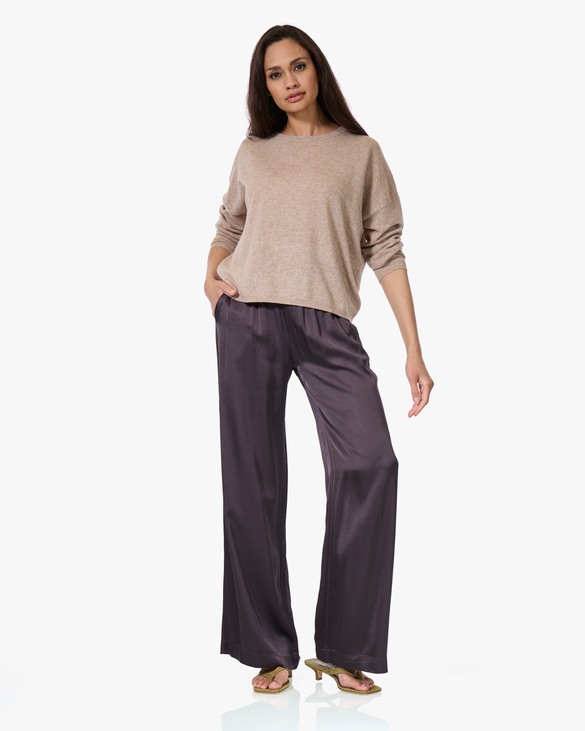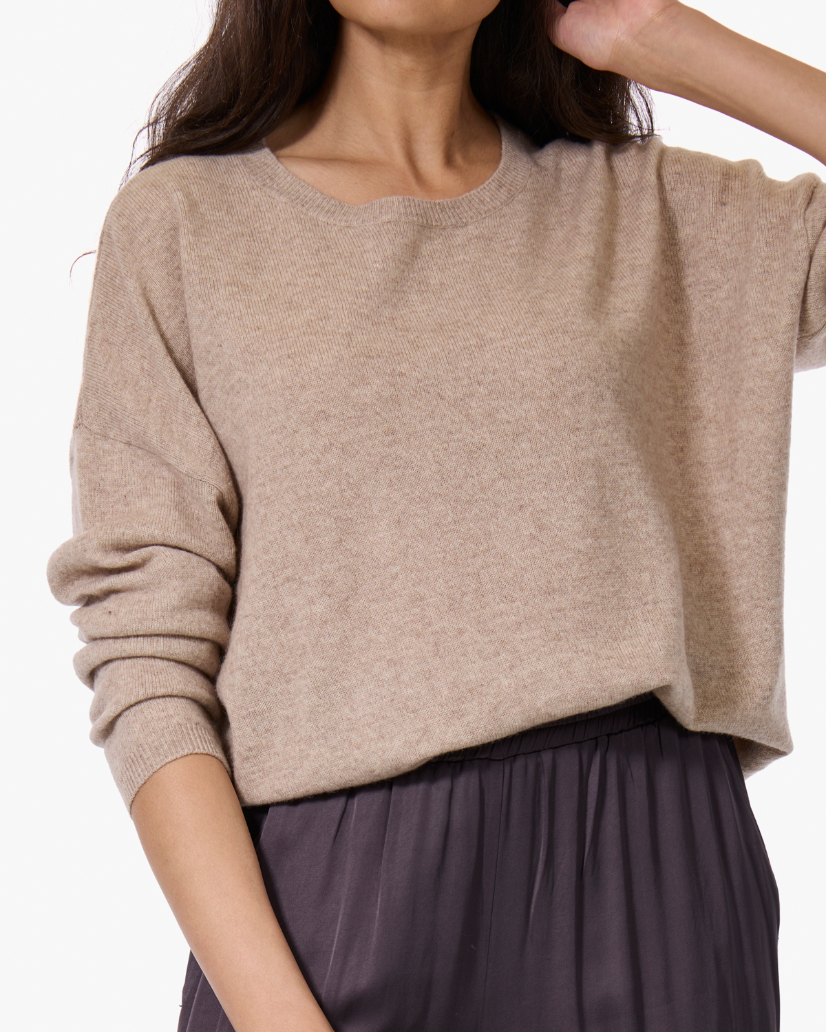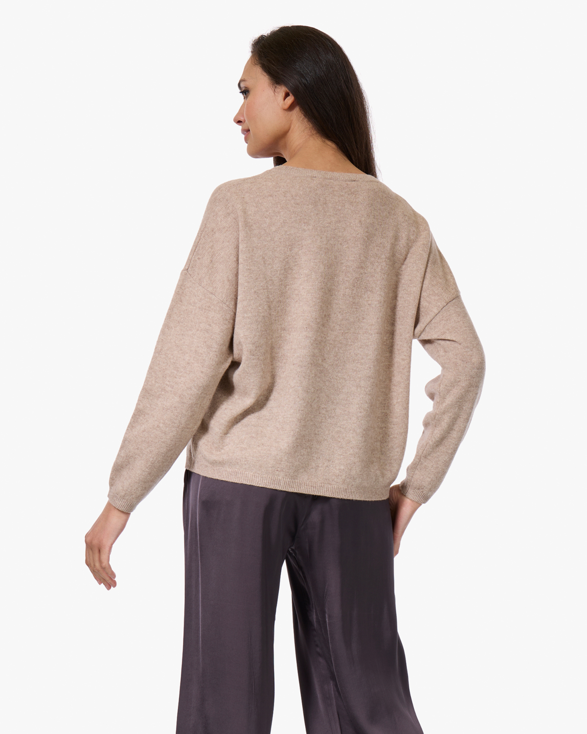 Combineer deze dames cashmere trui met een satijnen broek voor een stijlvolle mix van texturen, of draag hem bij een spijkerbroek voor een casual dagelijkse look. De neutrale beigetint vormt een mooie basis bij zowel donkere als lichte broeken en rokken.