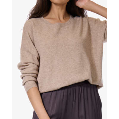 De Kaira trui van Absolut Cashmere in zachte beigetint is gemaakt van 100% cashmere. De trui heeft lange mouwen en een klassieke ronde hals die perfect aansluit. Door de losvallende pasvorm draagt het comfortabel en krijg je een relaxte, nonchalante look. Het fijngebreide cashmere voelt heerlijk zacht aan en geeft de trui een elegante uitstraling.