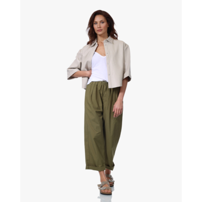 Deze schapenleren blouse van Alter Ego valt op door het luxueuze 100% schapenleer in een zachte almond kleur. Het model heeft wijde driekwartsmouwen, een klassieke kraag en verborgen knoopsluiting aan de voorkant. De relaxed fit zorgt voor een comfortabele pasvorm, terwijl de korte lengte een moderne twist geeft aan dit tijdloze design.