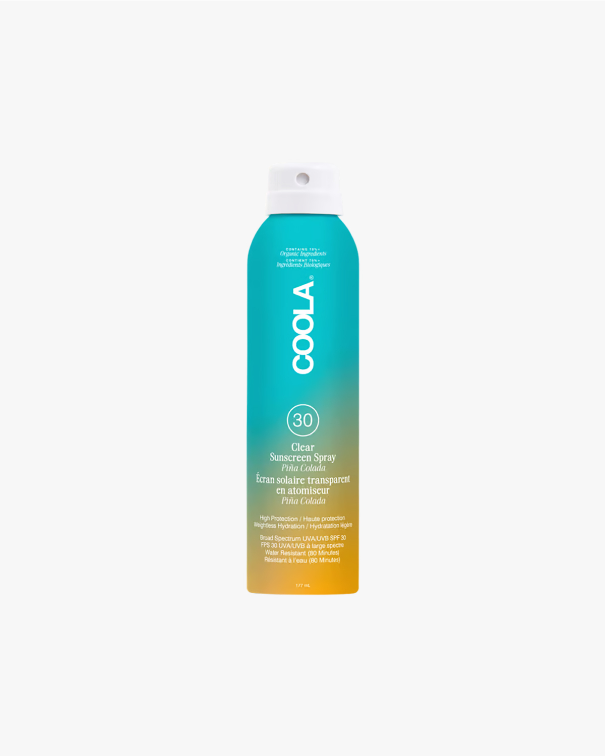COOLA Classic Body Spray SPF 30 – Pina Colada is een biologische, ultralichte zonnebrandspray met de tropische geur van piña colada. Deze vernieuwde versie van COOLA’s award-winning classic biedt effectieve, breed-spectrum bescherming en is ideaal voor lange dagen in de zon, maar zacht genoeg voor dagelijks gebruik.