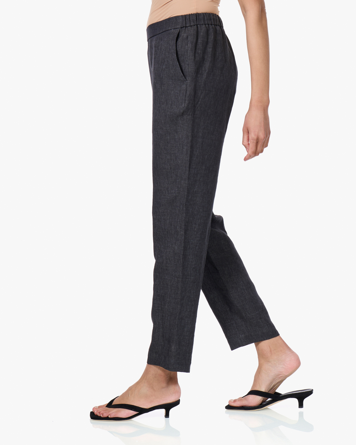 Deze grijze linnenbroek van Diega combineert comfort met tijdloze stijl. De pantalon is gemaakt van 100% linnen in een donkergrijze kleur en heeft een elastische tailleband die zorgt voor een comfortabele pasvorm. Het regular fit silhouet valt recht langs je lichaam en eindigt net boven de enkel. De broek heeft praktische zijzakken en biedt de natuurlijke ademende eigenschappen van linnen.