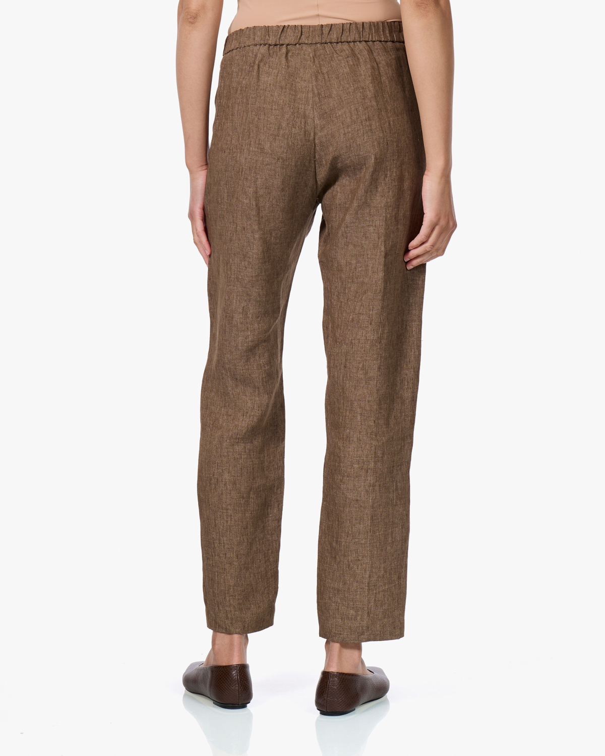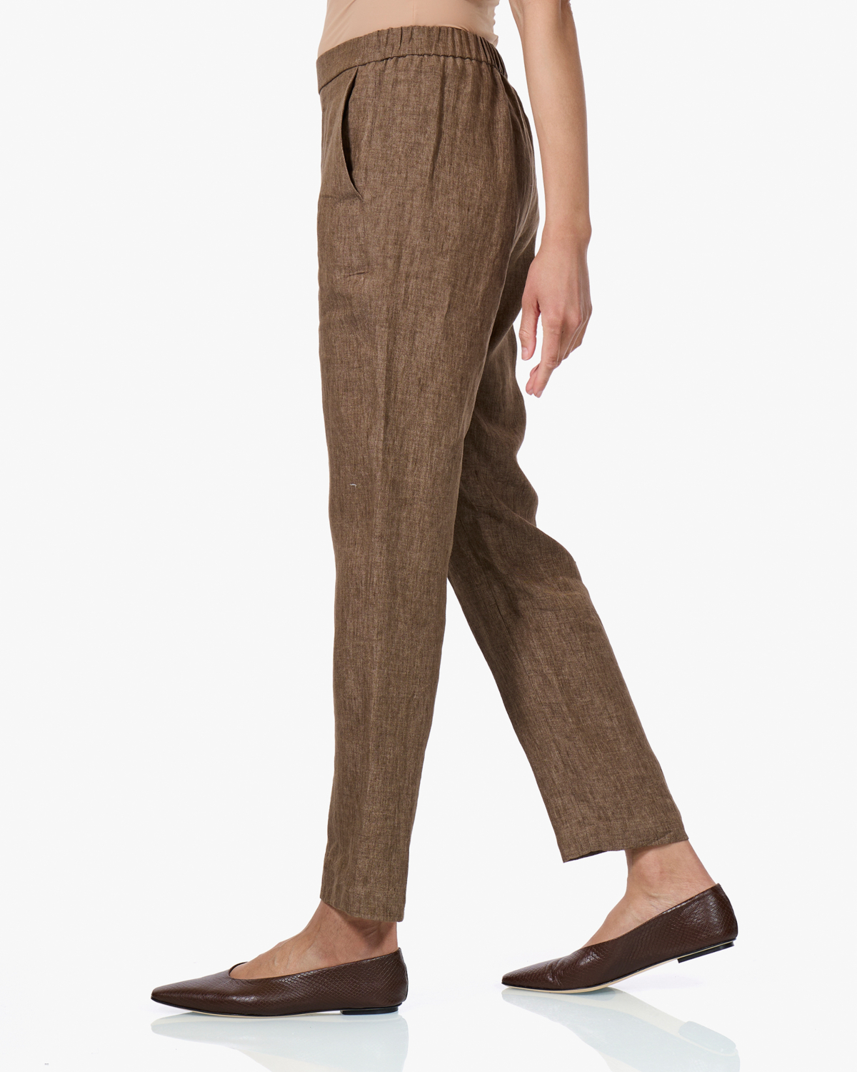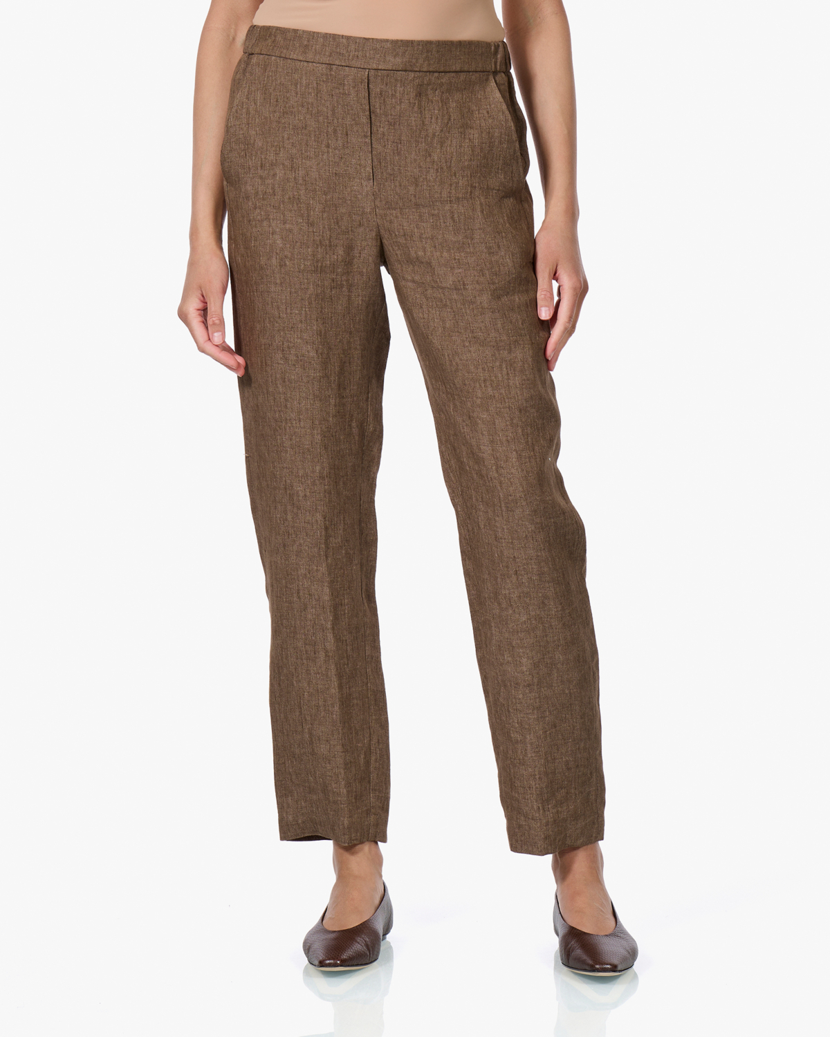 Deze bruine linnen pantalon van Diega combineert tijdloos design met heerlijk draagcomfort. De broek is gemaakt van 100% linnen en heeft een elastische tailleband met koord. De regular fit geeft je alle bewegingsvrijheid, terwijl de rechte pijpen voor een elegante uitstraling zorgen. Opvallend zijn de diepe zijzakken die zowel praktisch als stijlvol zijn.