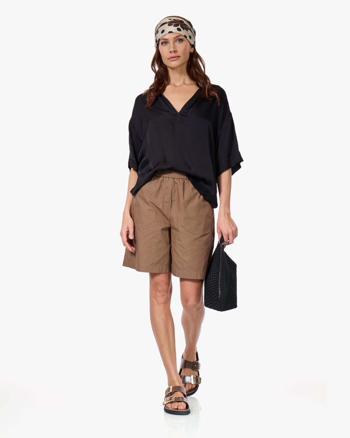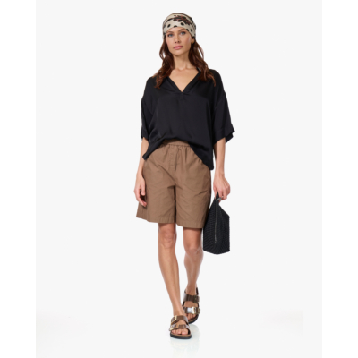 Draag de zwarte Tifana blouse bij een beige bermuda voor een casual dagelijkse outfit, of combineer hem met een donkere pantalon voor een chique look. Ook mooi bij een spijkerbroek of onder een blazer voor een gelaagde stijl.
