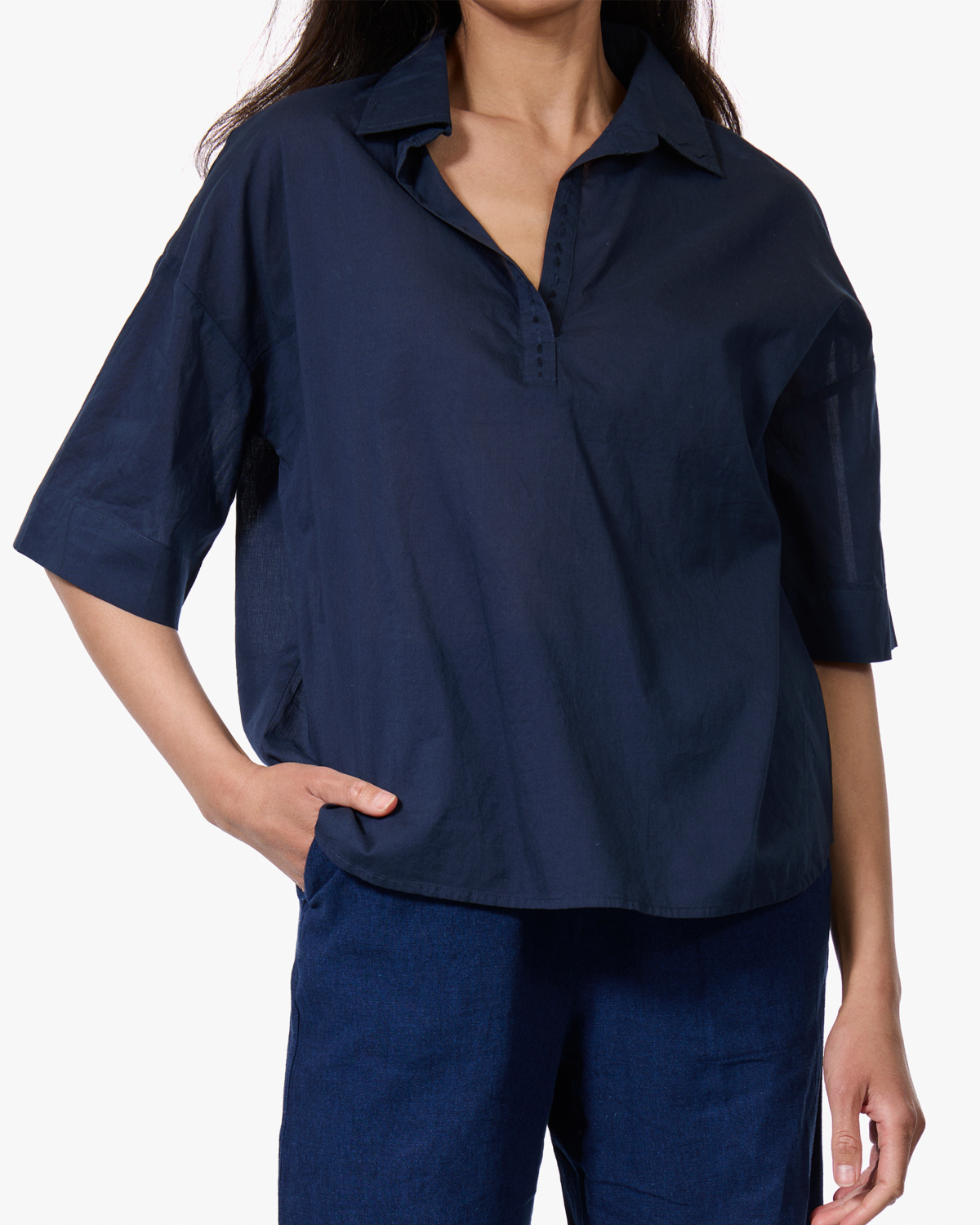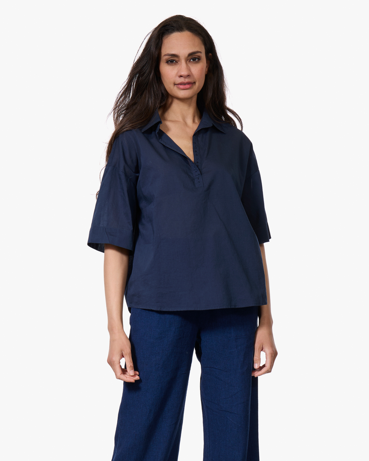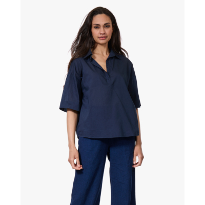 Deze voile blouse van Diega combineert comfort met nonchalante elegantie. De donkerblauwe kleur en relaxed fit maken van dit katoenen shirt een heerlijke favoriet voor je dagelijkse garderobe. De klassieke kraag en halflange mouwen geven een tijdloze uitstraling, terwijl de 100% katoenen voile zorgt voor een luchtige draagervaring.