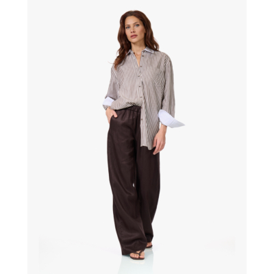 Deze linnen barrel broek van Drykorn combineert comfort met tijdloze stijl. Gemaakt van 100% linnen in een warme donkerbruine kleur. De relaxed fit zorgt voor een ontspannen silhouet, terwijl de elastische tailleband en praktische zijzakken functionaliteit toevoegen. De wide-leg snit met lange pijpen geeft de broek een moderne, nonchalante uitstraling. Een veelzijdig stuk dat perfect aansluit bij de hedendaagse damesmode.