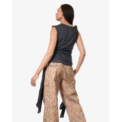 Deze grijze mouwloze top in een tijdloze aansluitende pasvorm heeft knoopdetails aan de zijkant die een speels accent geven. De mouwloze top is gemaakt van 50% biologisch katoen en 50% modal, wat zorgt voor een zachte en comfortabele draagervaring. Het knoopdetail aan de zijkant valt mooi en geeft de top een moderne twist.