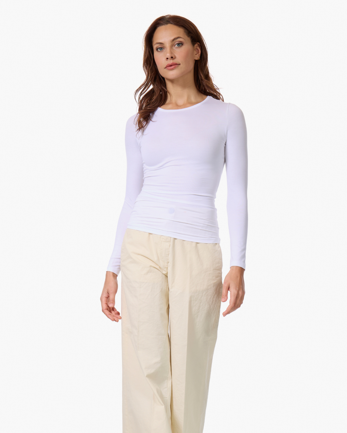 Deze witte longsleeve uit de Soft Touch lijn straalt pure elegantie uit. Gemaakt van 95% modal met 5% elastaan voor optimaal draagcomfort en soepele bewegingsvrijheid. De ronde halslijn en lange mouwen zorgen voor een klassieke uitstraling, terwijl de slim fit pasvorm je silhouet mooi volgt. Het zachte modal materiaal voelt heerlijk aan op de huid en behoudt zijn vorm na elke wasbeurt.