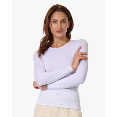 De tijdloze witte kleur maakt deze Hanro longsleeve een veelzijdige basis voor elke look. Draag deze essential onder een blazer voor een professionele uitstraling, of combineer met wijde jeans en sneakers voor een casual dagje uit. Ook heerlijk onder een dunne trui als extra laag tijdens de koudere maanden.