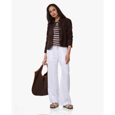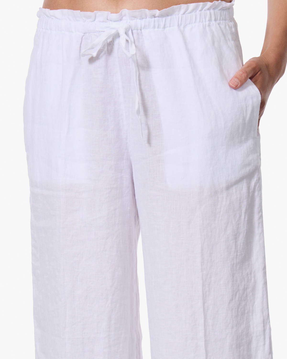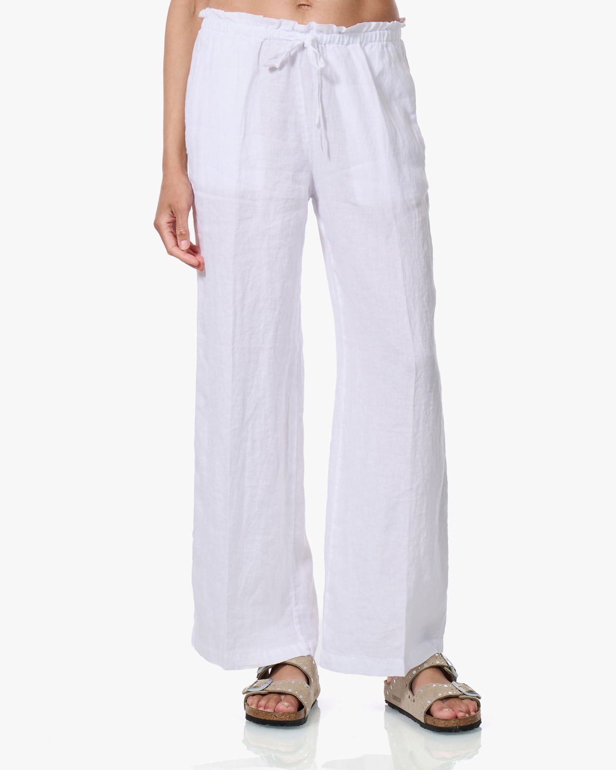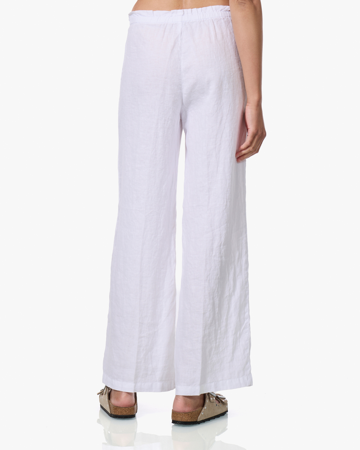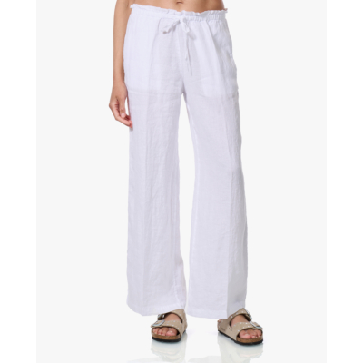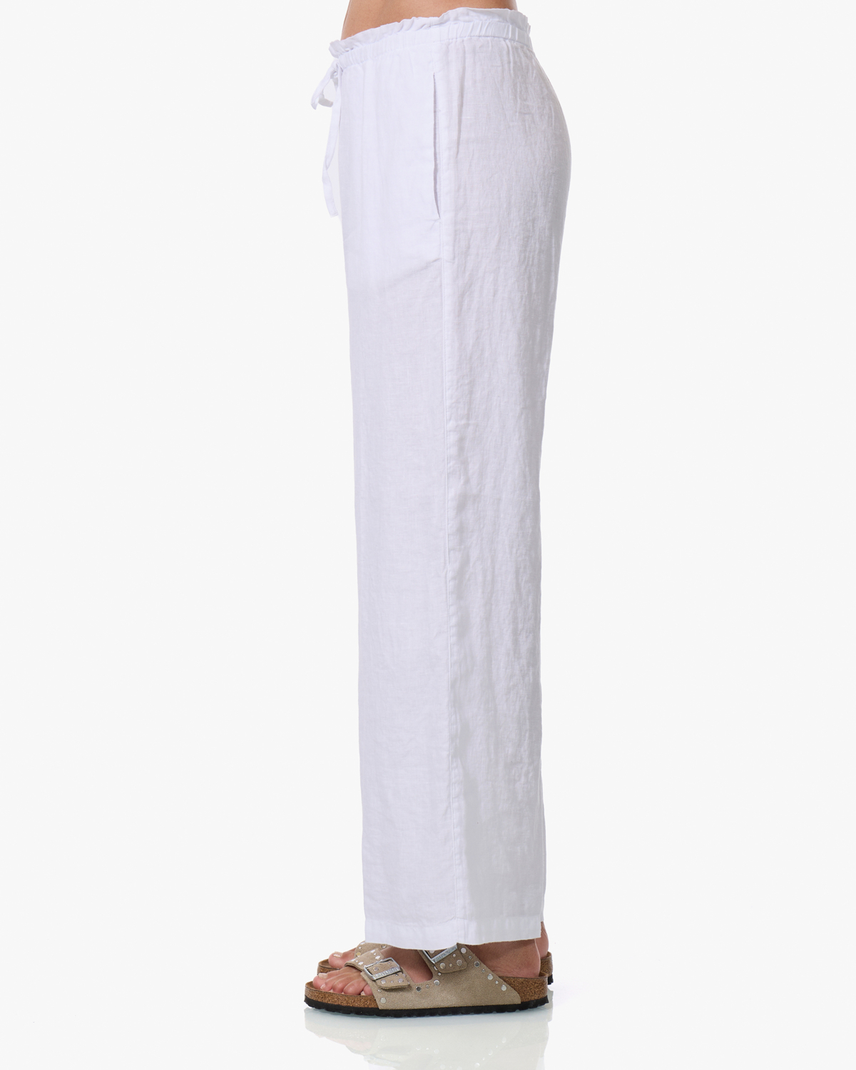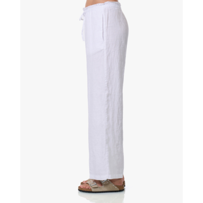 Deze witte linnen broek van James Perse heeft een wijde, rechte pijp en elastische tailleband met trekkoord. De broek is gemaakt van 100% linnen en heeft een relaxed fit silhouet. De elastische band aan de taille zorgt voor comfort en het trekkoord geeft je de mogelijkheid om de pasvorm aan te passen. Een perfecte essential die heerlijk draagt tijdens warme dagen.
