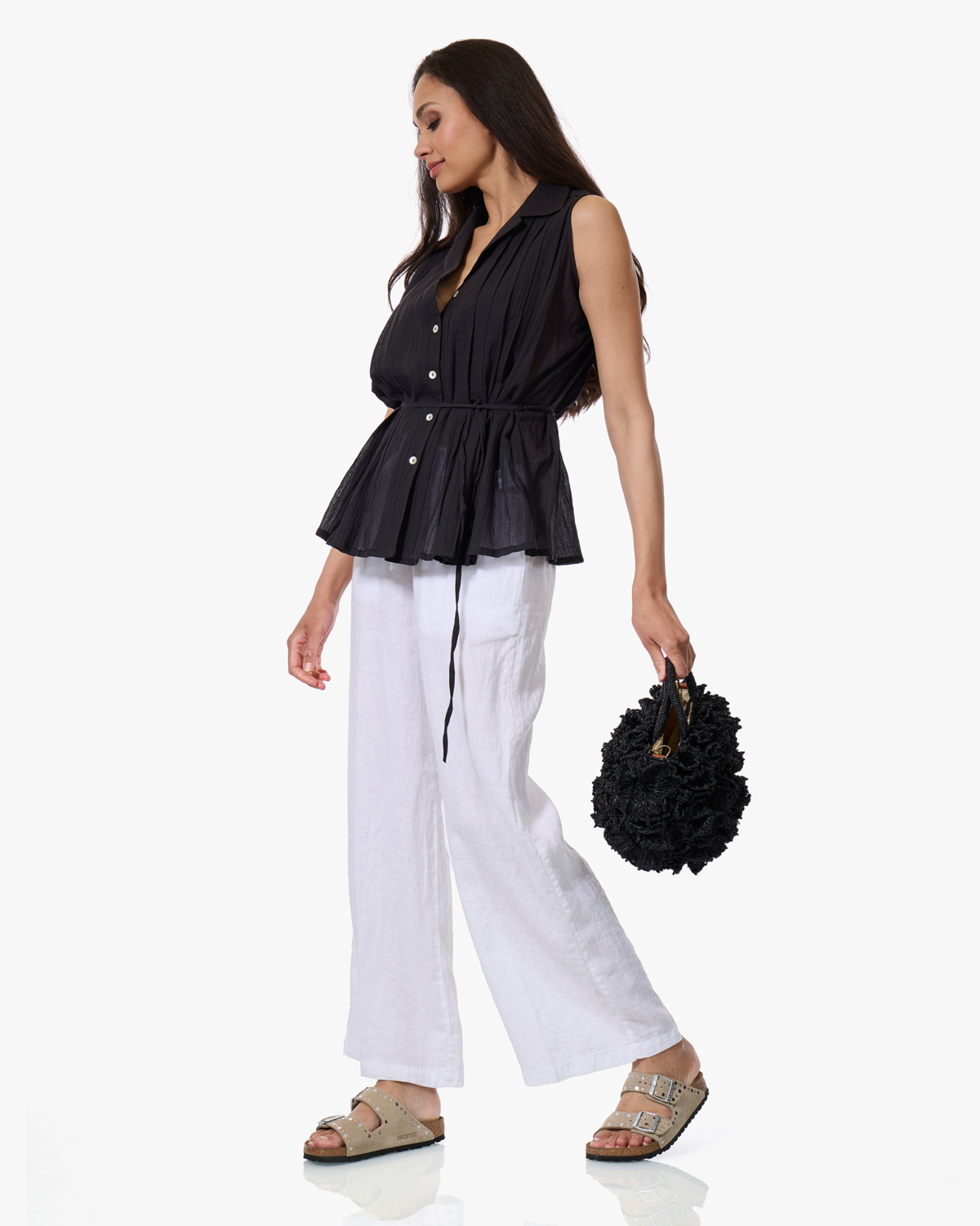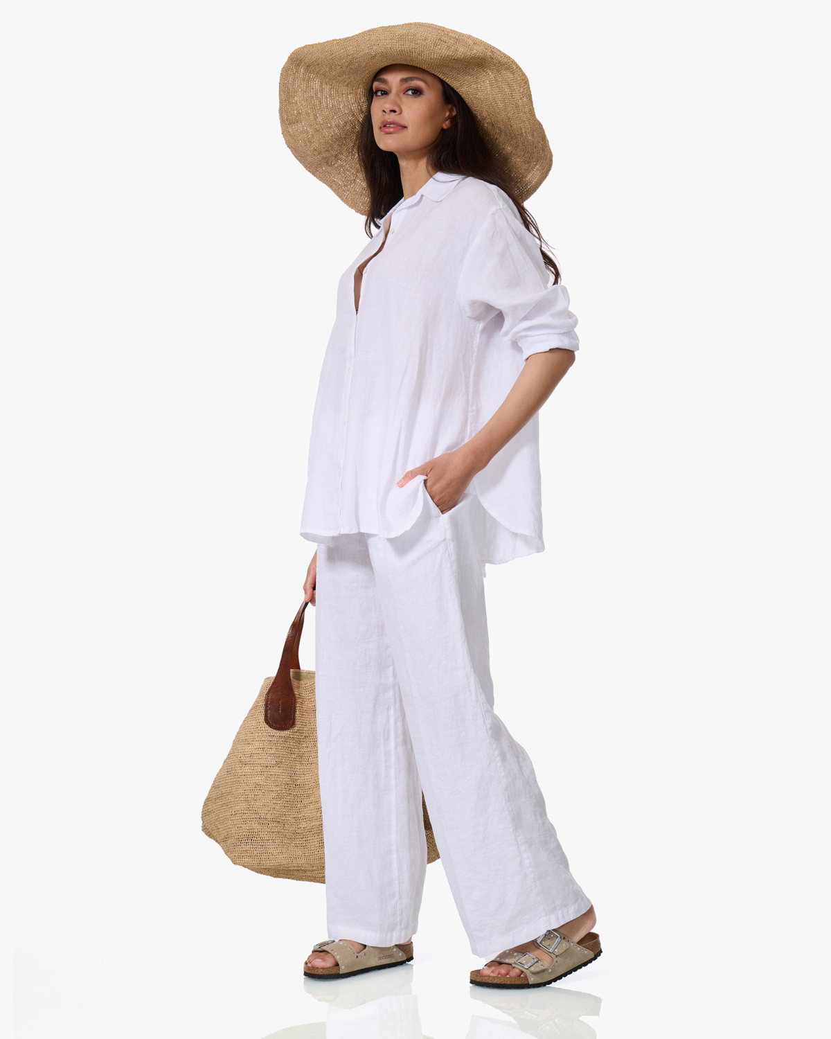 Combineer deze witte linnenbroek met een basic T-shirt voor een casual look of kies voor een mouwloze blouse voor een elegantere uitstraling. Ook staat de broek mooi bij een gestreept shirt of een lichte cardigan voor gelaagde outfits.