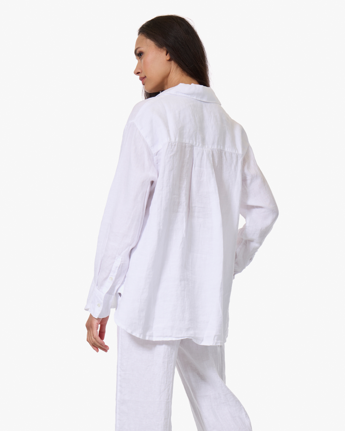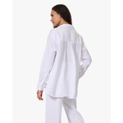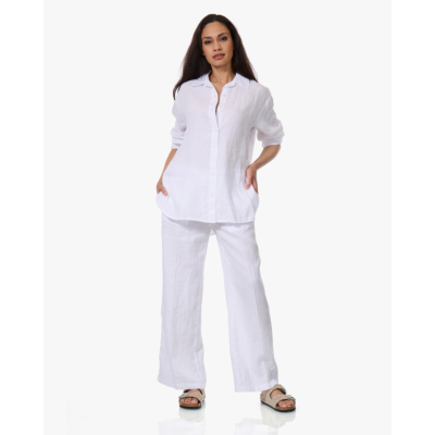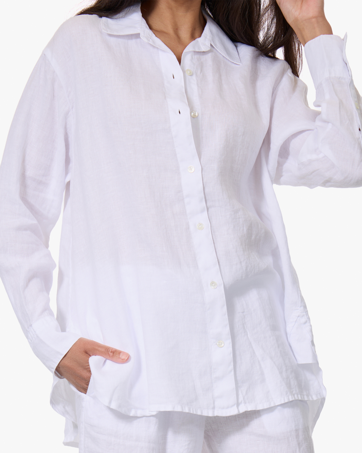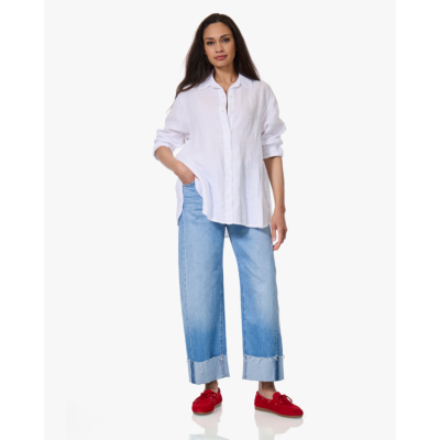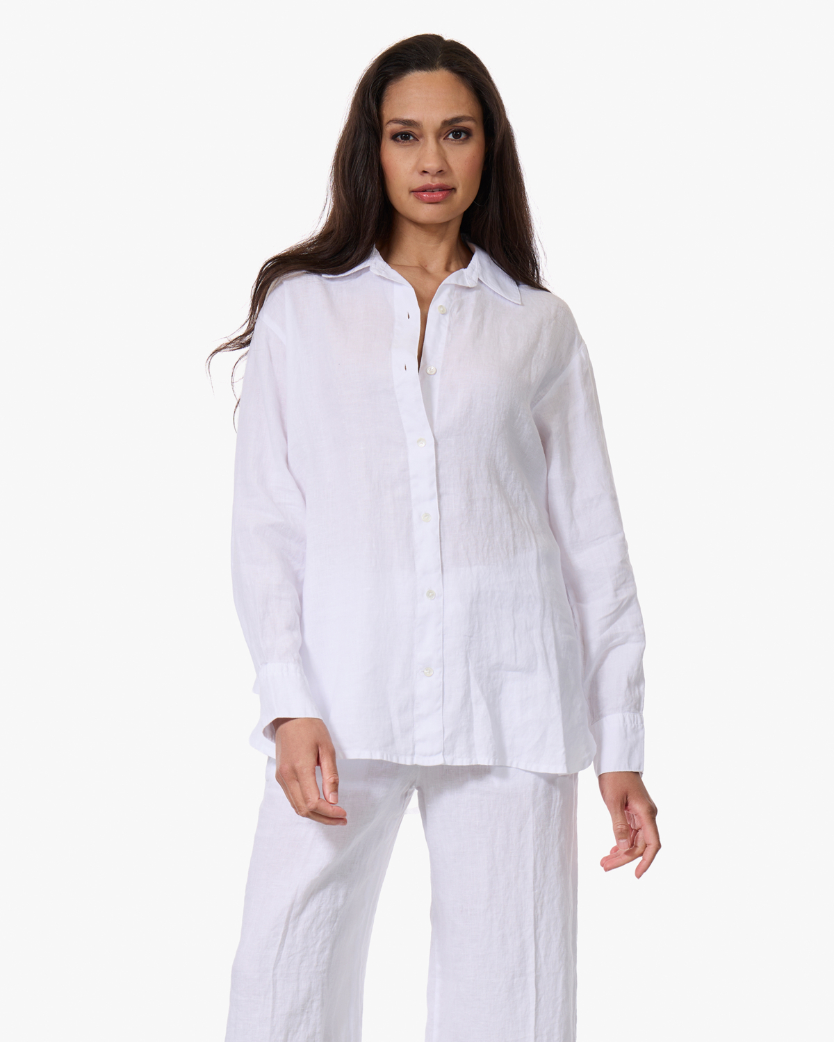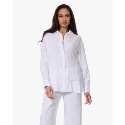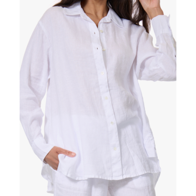 Deze ruime witte blouse van James Perse is gemaakt van 100% linnen en heeft een oversized fit die heerlijk luchtig draagt. De blouse beschikt over lange mouwen, een klassieke kraag en een knoopsluiting aan de voorzijde. Het linnen materiaal voelt natuurlijk en ademend aan, perfect voor warme dagen. De relaxed pasvorm geeft bewegingsvrijheid en creëert een nonchalant silhouet. Een tijdloze essential die comfort en stijl combineert.