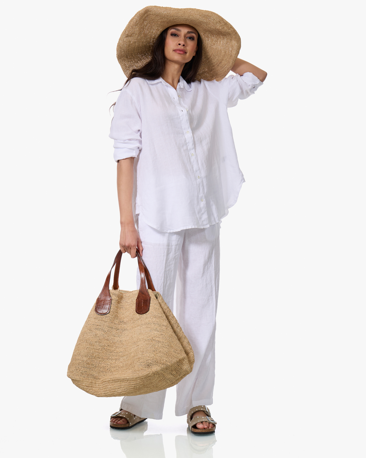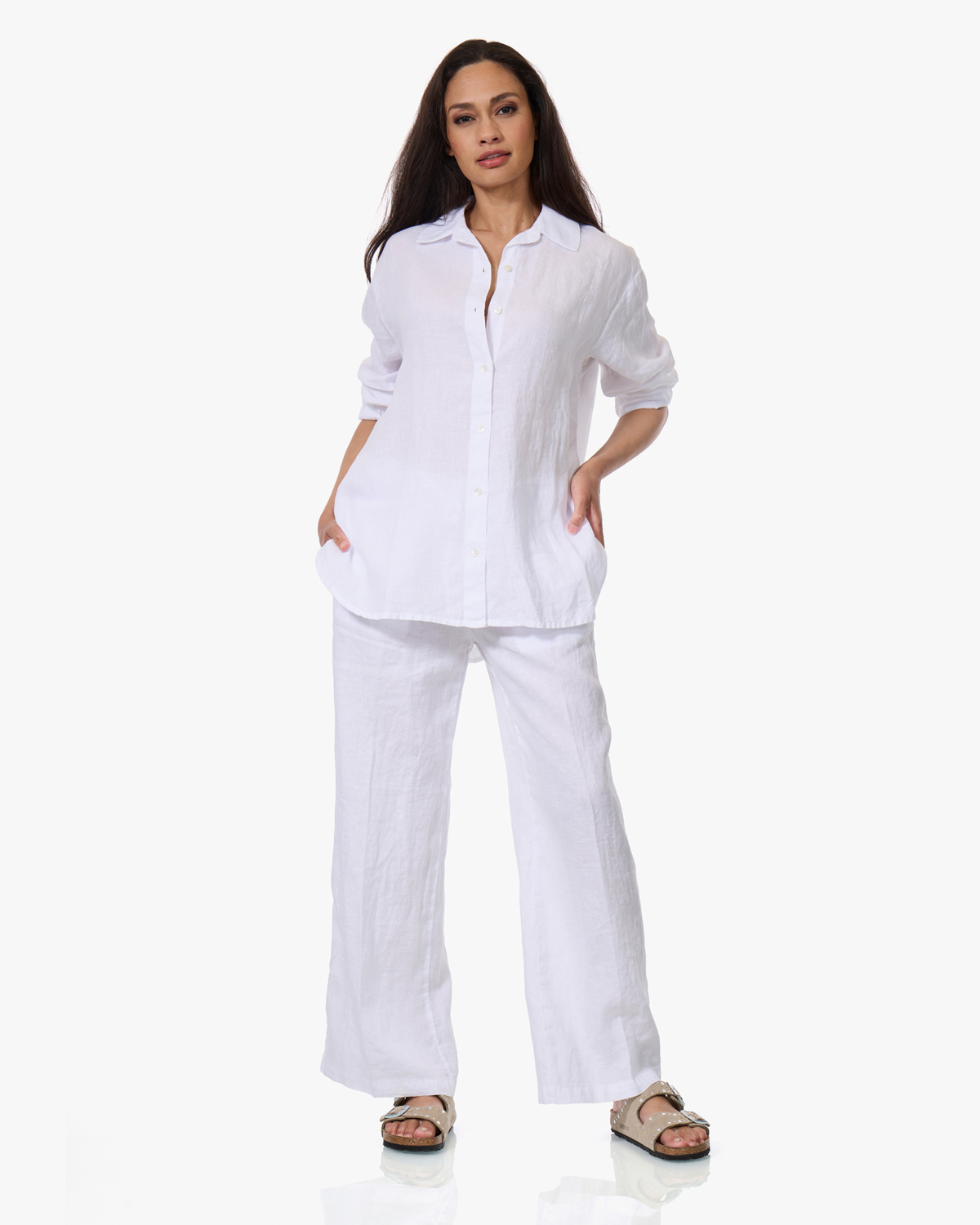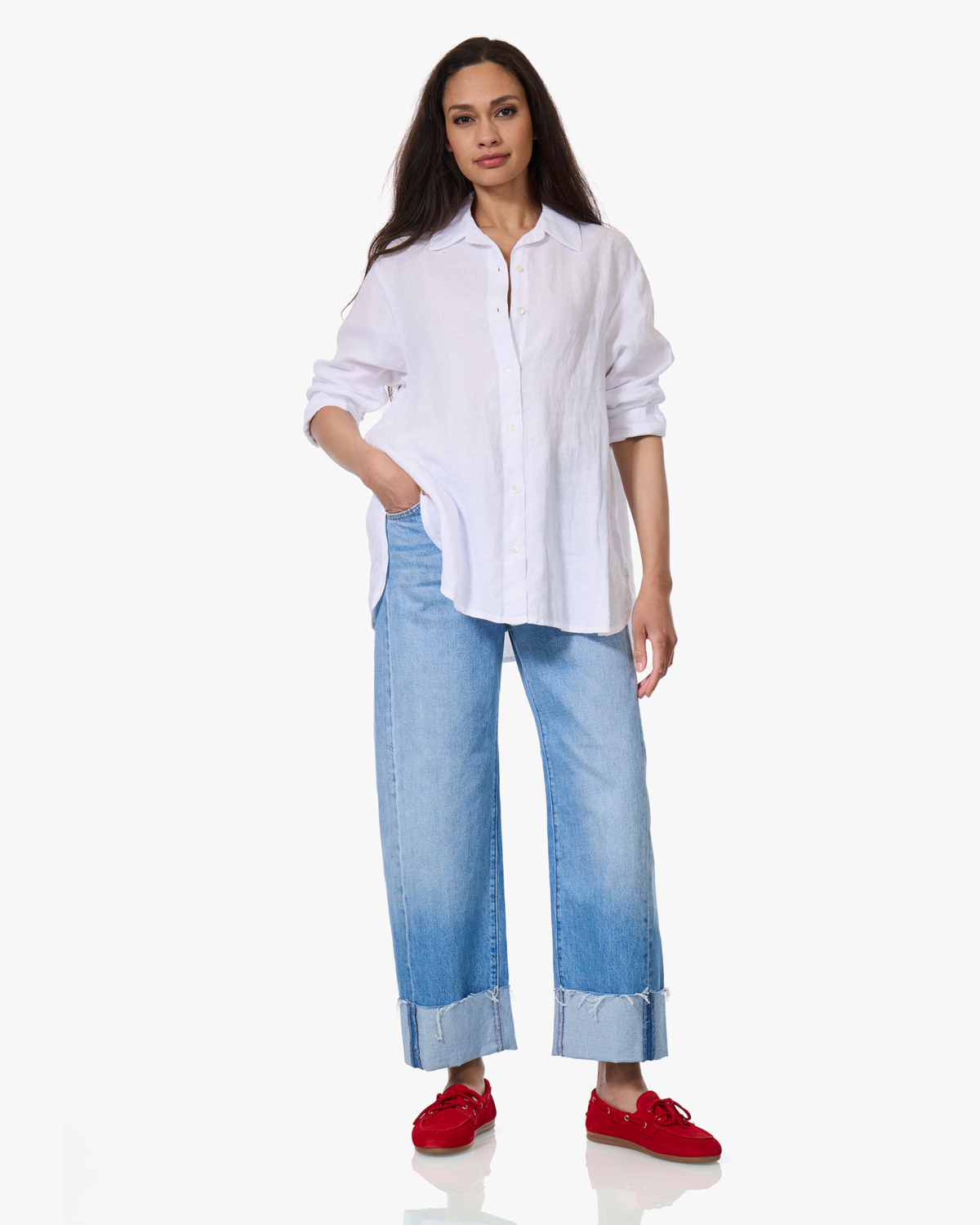 Deze ruime witte blouse van James Perse is gemaakt van 100% linnen en heeft een oversized fit die heerlijk luchtig draagt. De blouse beschikt over lange mouwen, een klassieke kraag en een knoopsluiting aan de voorzijde. Het linnen materiaal voelt natuurlijk en ademend aan, perfect voor warme dagen. De relaxed pasvorm geeft bewegingsvrijheid en creëert een nonchalant silhouet. Een tijdloze essential die comfort en stijl combineert.