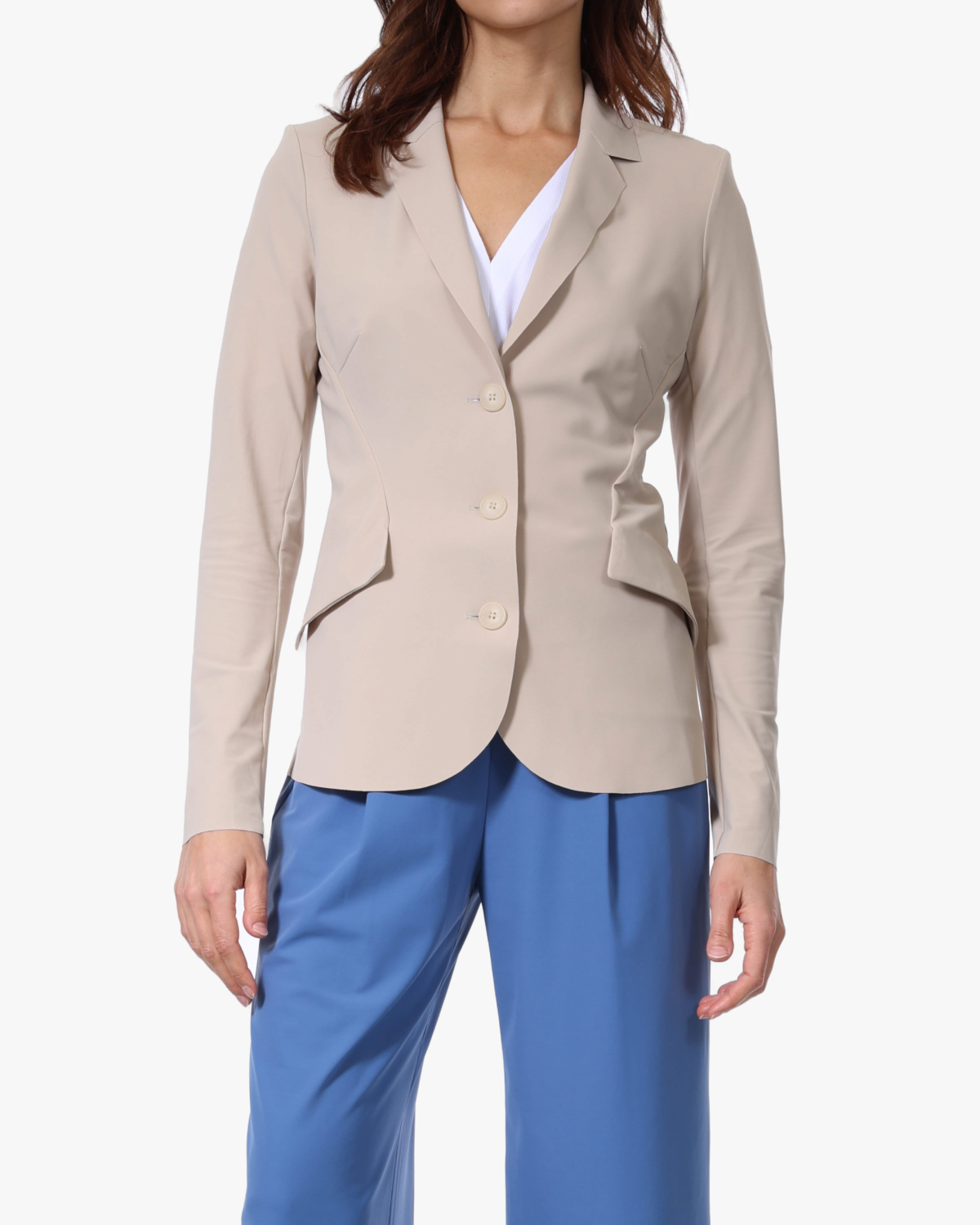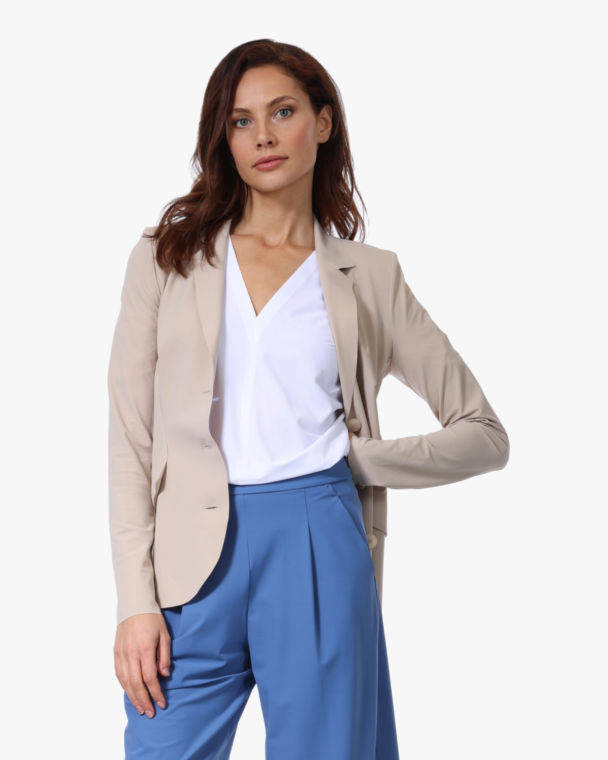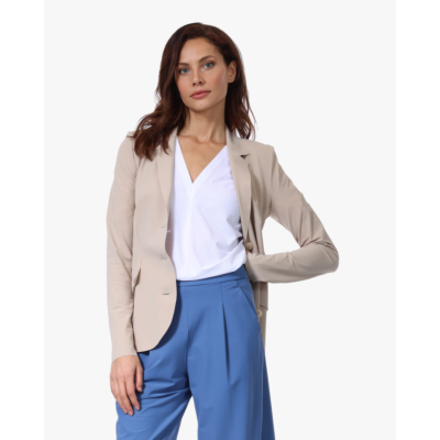 Deze tijdloze travel blazer in een warme beige tint combineert stijl met comfort. De blazer heeft een klassieke kraag en wordt afgesloten met drie knopen aan de voorkant. Gemaakt van een stretch materiaal bestaande uit 75% polyamide en 25% elastaan, wat zorgt voor bewegingsvrijheid en draagcomfort. De regular fit pasvorm valt comfortabel en de lange mouwen maken het een veelzijdige toevoeging aan je garderobe. Een heerlijke essential van Japan TKY die perfect is voor verschillende gelegenheden.