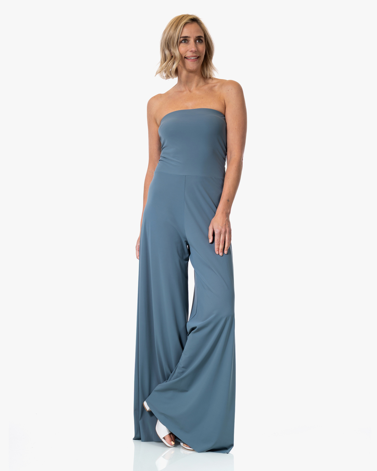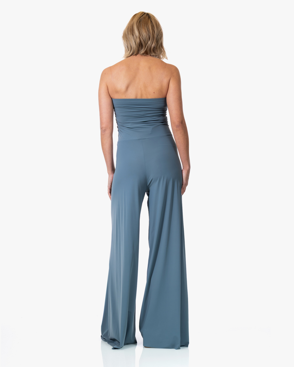 Deze strapless travel jumpsuit van Japan TKY is gemaakt van een soepele mix van 73% polyamide en 27% elastaan in een zachte lichtgrijze tint. Het strakke bandeau-bovenstuk heeft een licht geplooid detail en gaat over in wijdvallende palazzo-poten. De regular fit pasvorm zorgt voor een comfortabele draag en de stretch-stof beweegt mee met je lichaam.