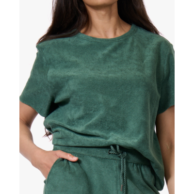 Dit groene terry shirt van Majestic Filatures heeft een zachte badstof textuur en relaxed fit pasvorm. Het shirt is gemaakt van 80% katoen en 20% polyamide, met korte mouwen en een ronde hals. De boxy snit zorgt voor een nonchalante uitstraling en heerlijk draagcomfort. Een tijdloze essential in een frisse groene kleur.