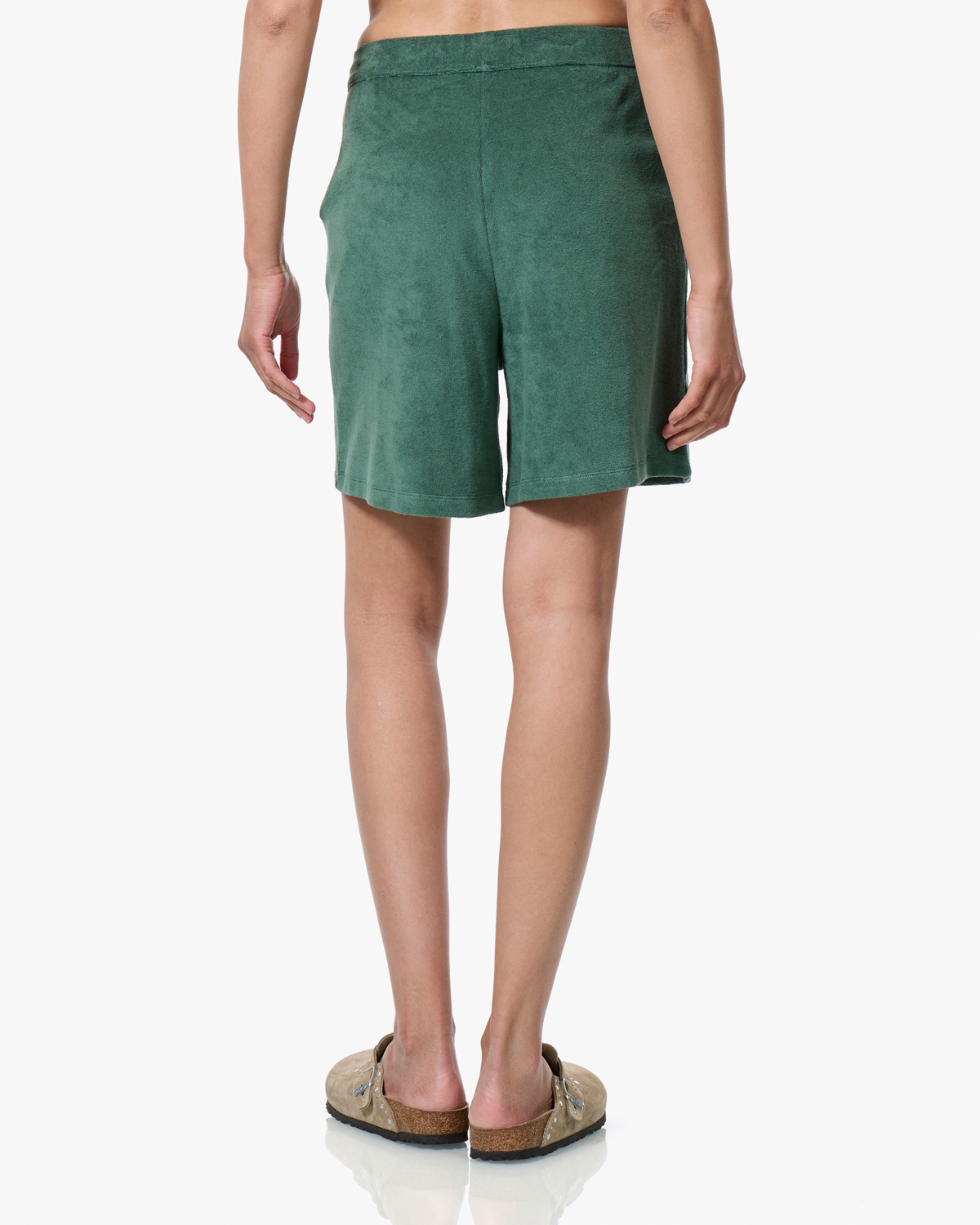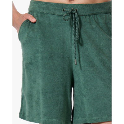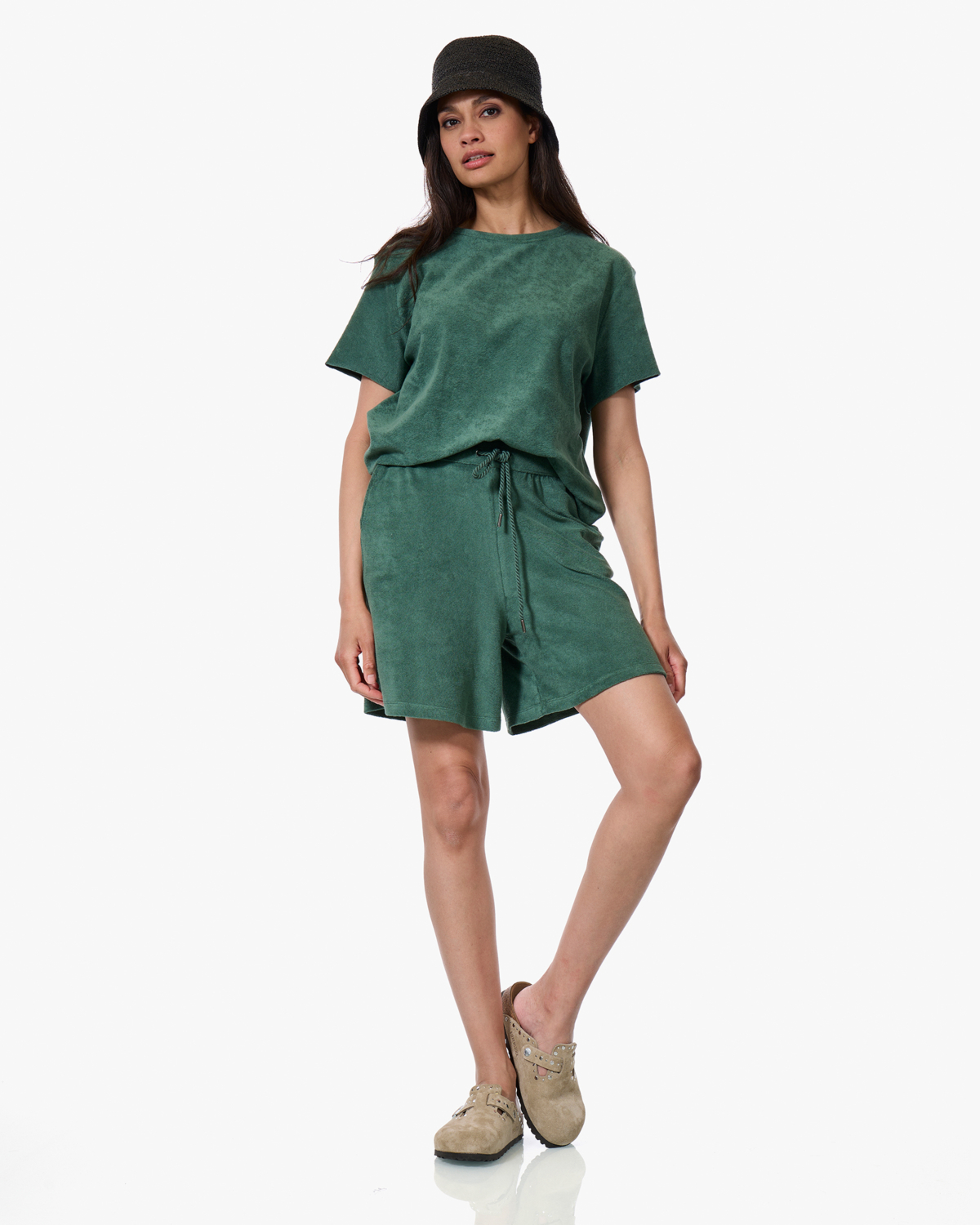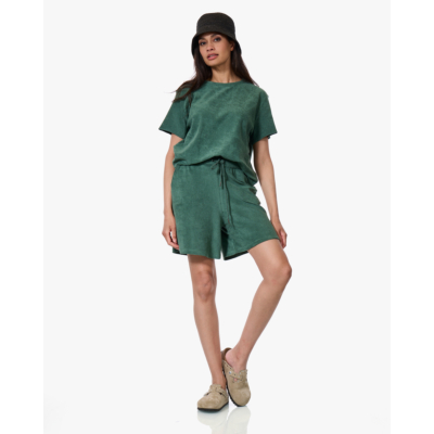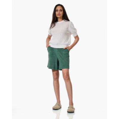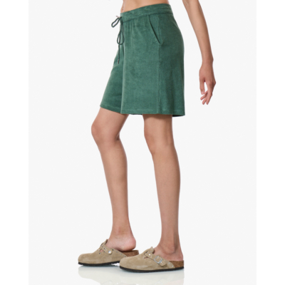 Deze dames terry short combineer je leuk met een basic t-shirt voor een ontspannen look of met een lichte blouse voor een wat nettere outfit. Door de neutrale groene kleur past de short bij veel verschillende bovenstukken.
