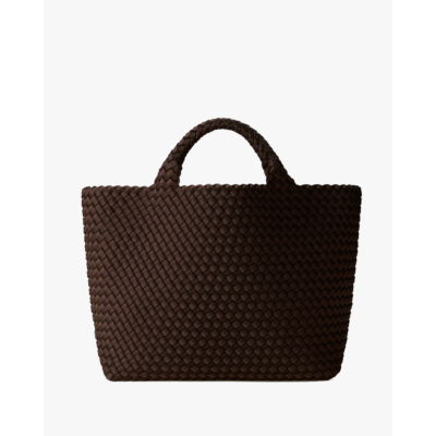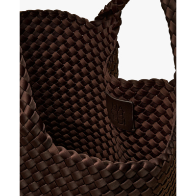 Deze ruime gevlochten tas van Naghedi combineert tijdloze elegantie met praktische functionaliteit. Gemaakt van hoogwaardig neopreen in een warme bruine tint, met een karakteristieke gevlochten structuur over het gehele oppervlak. De tas heeft stevige gevlochten hengsels en een open top voor gemakkelijke toegang. Het flexibele neopreen materiaal zorgt voor comfort tijdens het dragen en behoudt zijn vorm. Een veelzijdige favoriet die moeiteloos meegaat van werk naar weekend.
