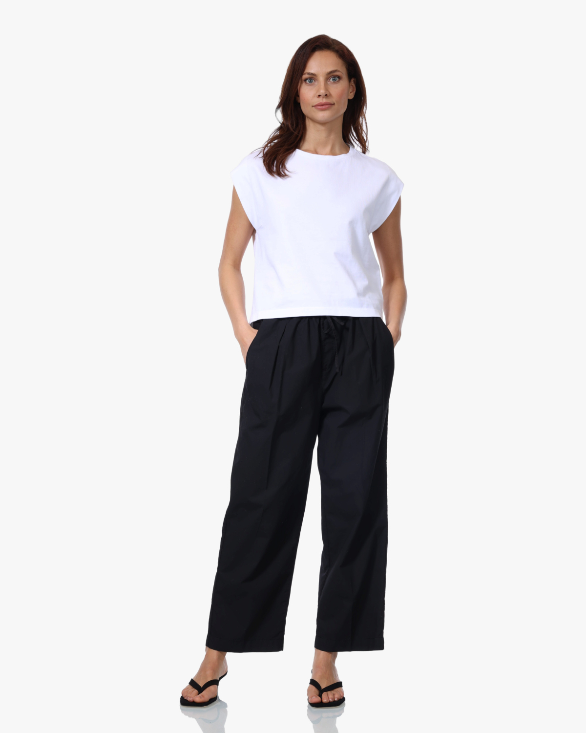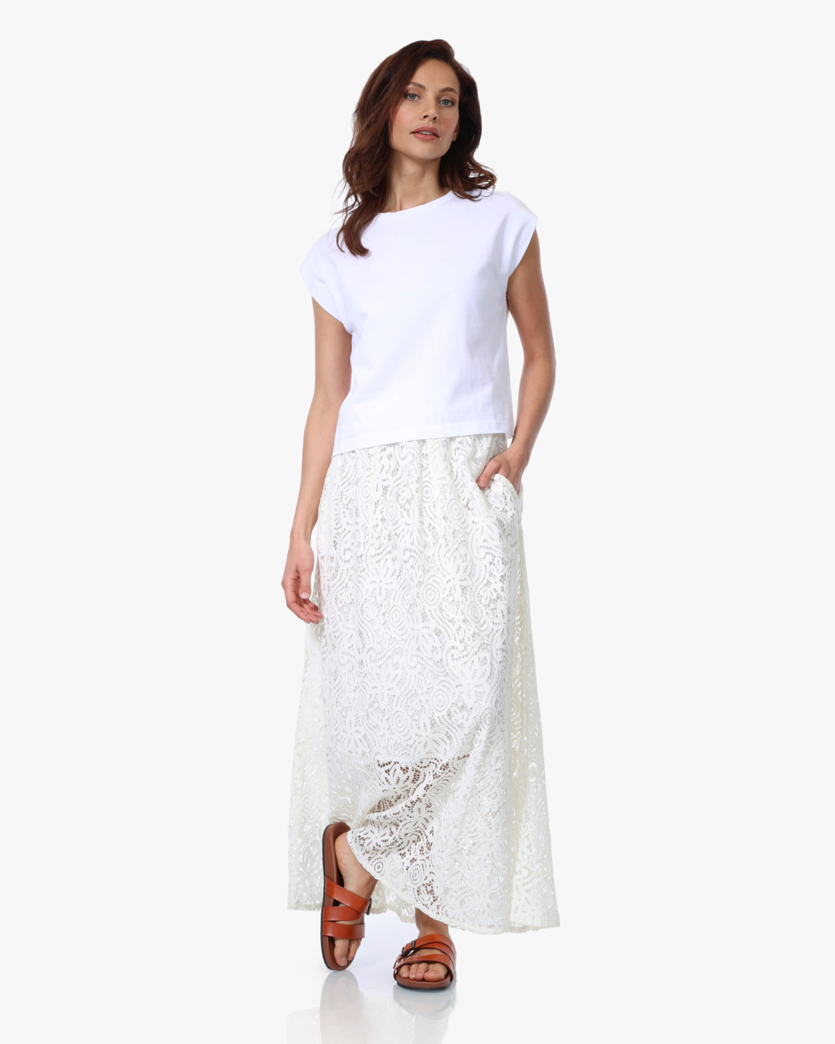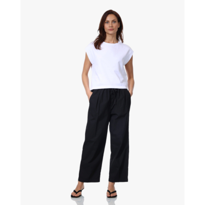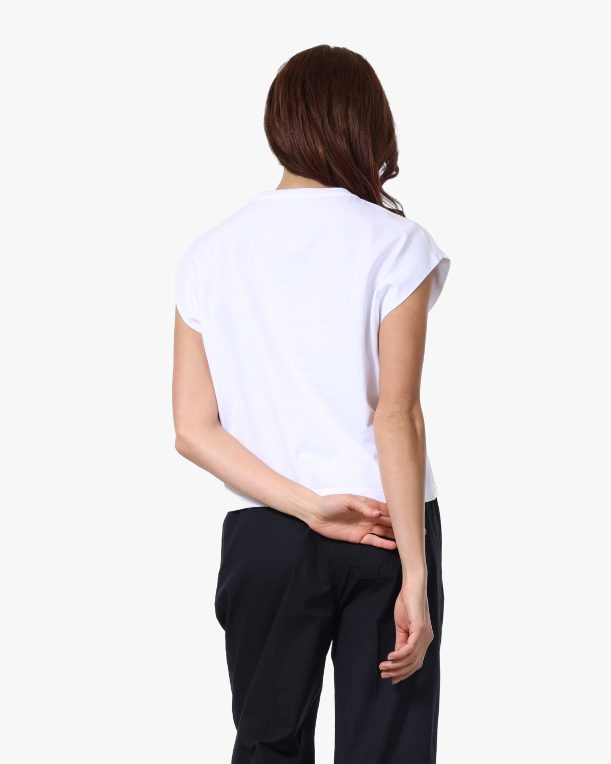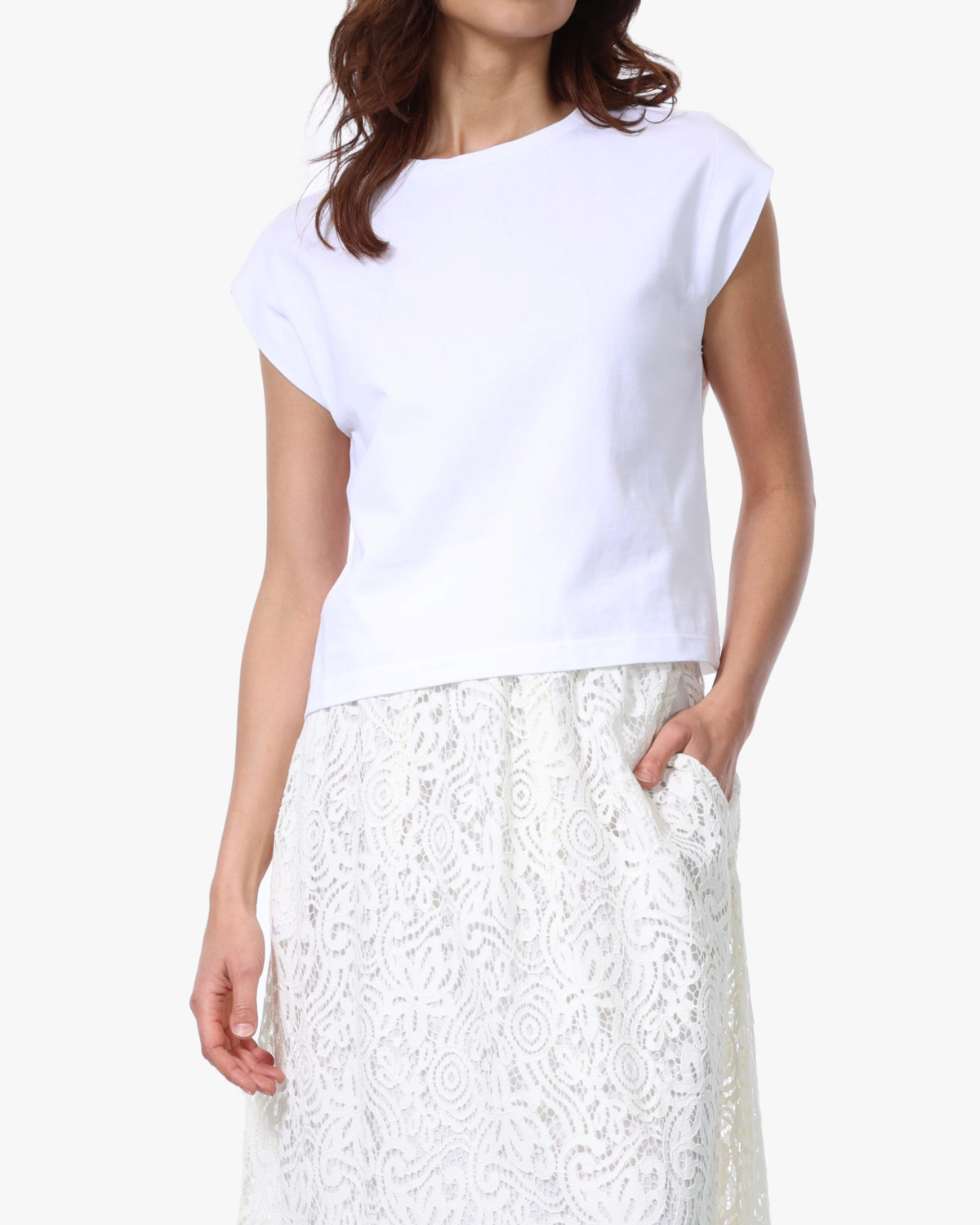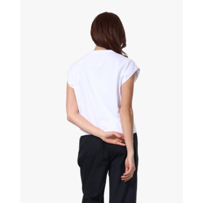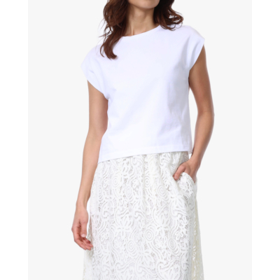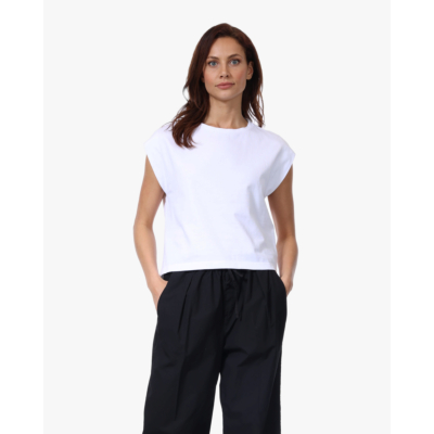 Dit witte mouwloze shirt van no man's land heeft een nonchalante ronde hals en korte mouwen met een subtiele omslag. De relaxed fit geeft het shirt een comfortabele, ontspannen uitstraling. Het zachte katoenen materiaal voelt prettig aan en de moderne snit maakt het een veelzijdige basic. De minimalistische witte kleur en strakke lijnen zorgen voor een tijdloze look.