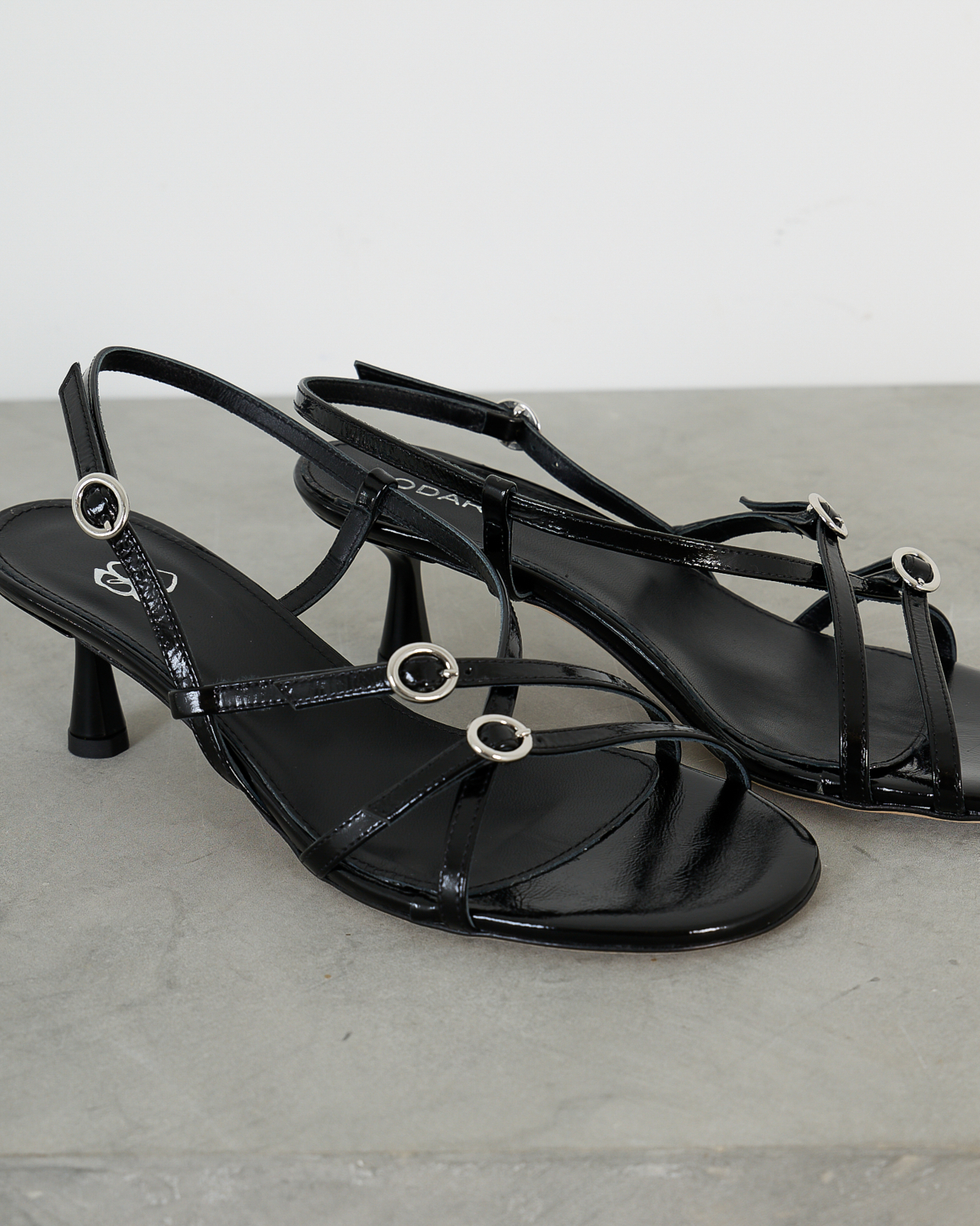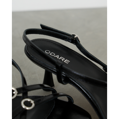 De zwarte Blanca sandalen van Odare zijn gemaakt van 100% leer en hebben een elegante kitten heel hak. Het model heeft fijne bandjes die over de voet kruisen en wordt afgesloten met een verstelbare enkelbandje met gesp. De metalen oogjes aan de bandjes geven de sandaal een moderne touch. De zilveren gesp zorgt voor een verfijnde afwerking.