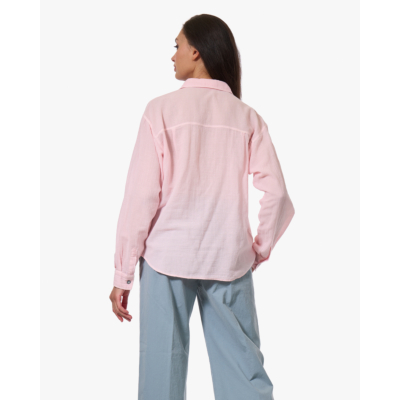 Deze zachte blouse van Pomandère is gemaakt van 100% katoen met een natuurlijke crinkle structuur. De blouse heeft een klassieke kraag, lange mouwen met knoopsluiting en een knopenrij aan de voorzijde. De relaxed fit zorgt voor veel bewegingsvrijheid en draagcomfort. De zachte roze kleur geeft het geheel een frisse uitstraling.