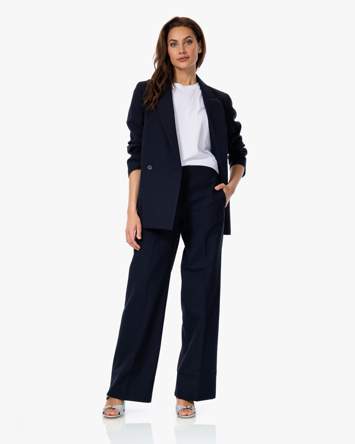 Deze dames blazer van Pomandère combineer je gemakkelijk met een witte blouse en pantalon voor een complete business look. De Wol Mix Blazer Navy past ook mooi over een fijne trui met jeans voor een meer casual stijl.