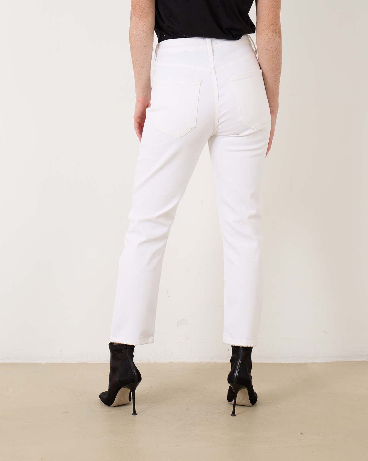 De Riley Crop jeans is een kenmerkende stijl van het merk Agolde. De jeans met high-waist en rechte pijpen sluiten nauw aan op het lichaam voor een veelzijdige look. Het 5-pocket model is uitgevoerd in de jeans kleur Sourcream en is voorzien van koperen rivets.