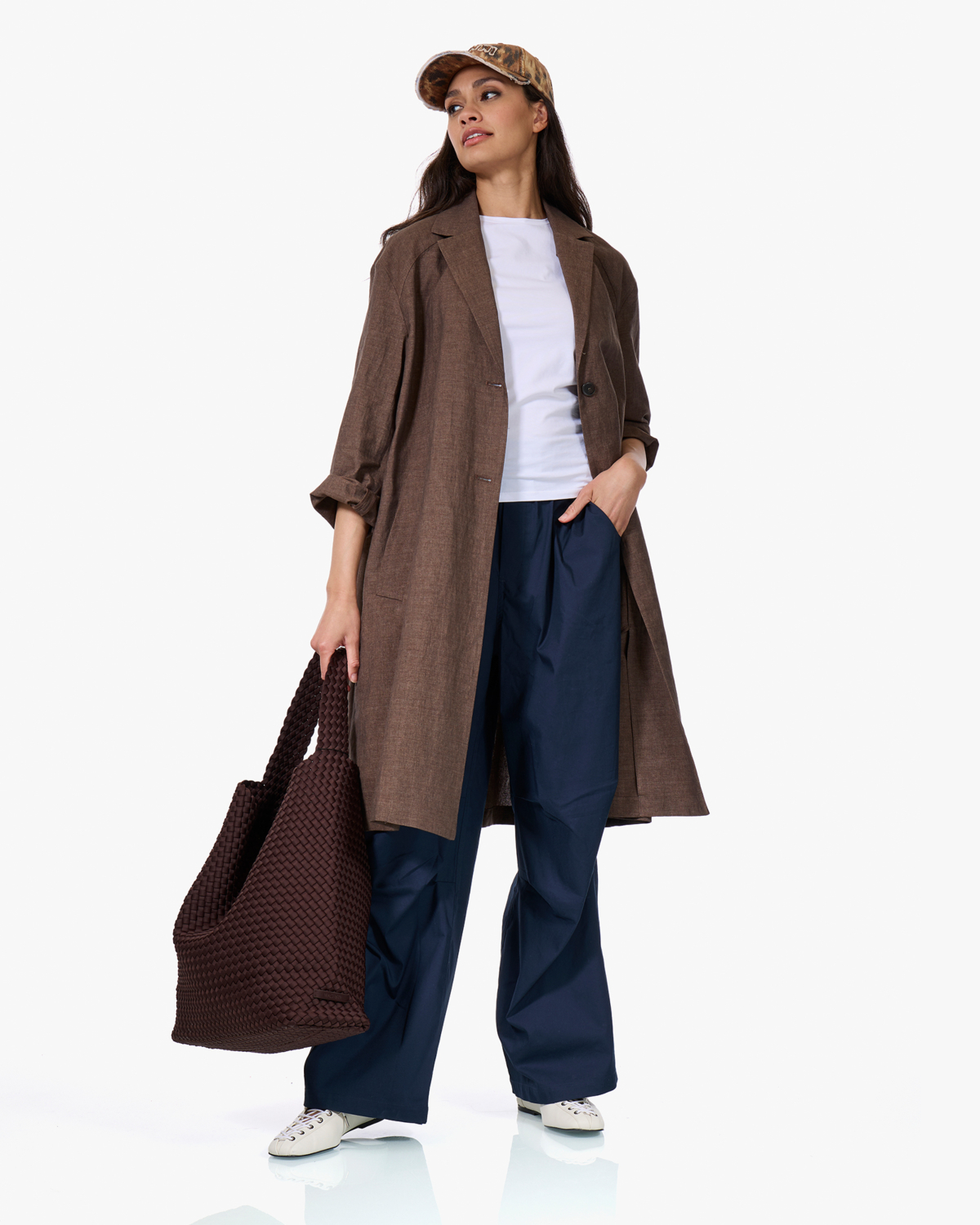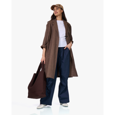 Deze ontspannen poplin broek in marine heeft een comfortabel losvallende pasvorm met wijde pijpen. Het zachte stretchy materiaal van 63% katoen, 32% polyamide en 5% elastaan zorgt voor een heerlijke draagervaring. De broek heeft praktische zijzakken en een elastische taille voor extra comfort. Een tijdloze essential die veelzijdig te combineren is.