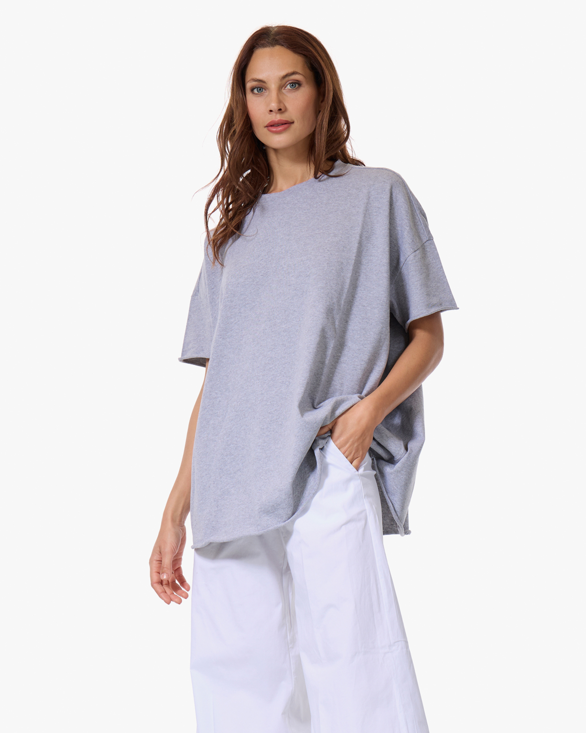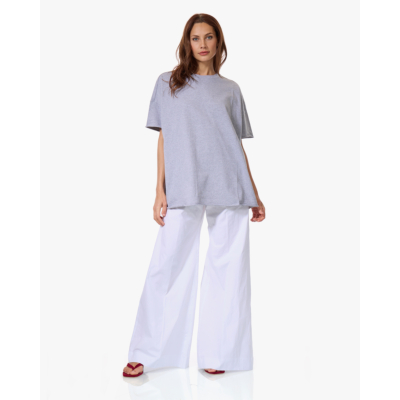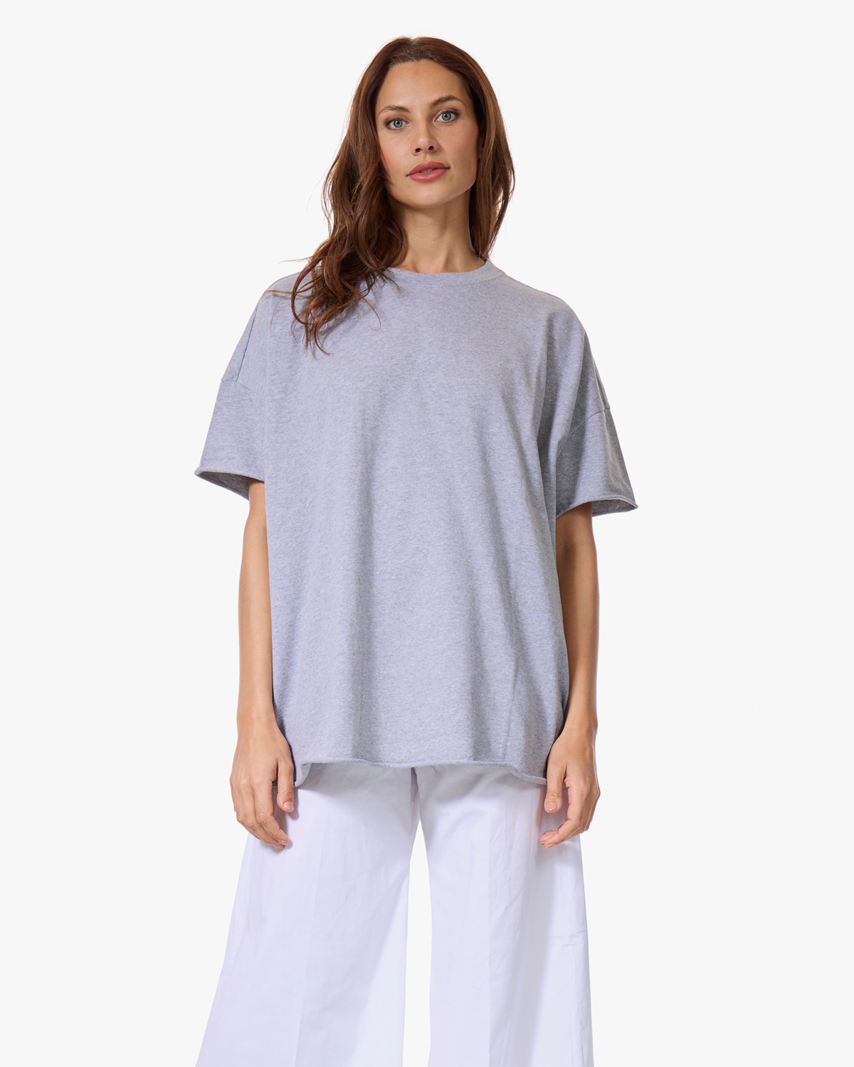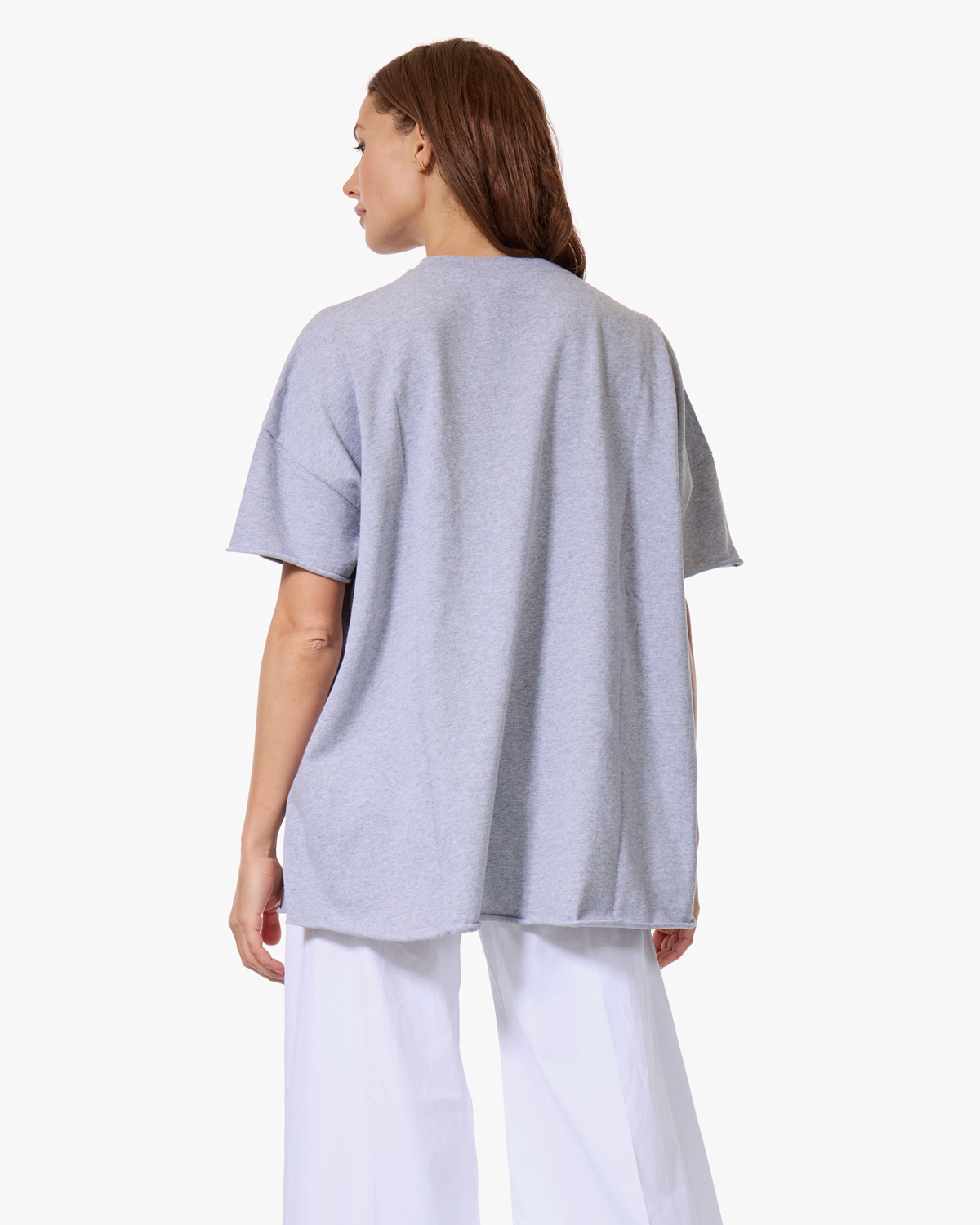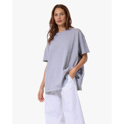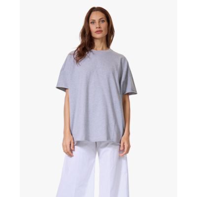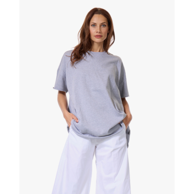 Draag dit grijze t-shirt met een witte wijde broek voor een minimalistisch geheel, of combineer het met een donkere jeans en sneakers. Ook leuk met een maxi rok en sandalen voor een casual zomerlook.