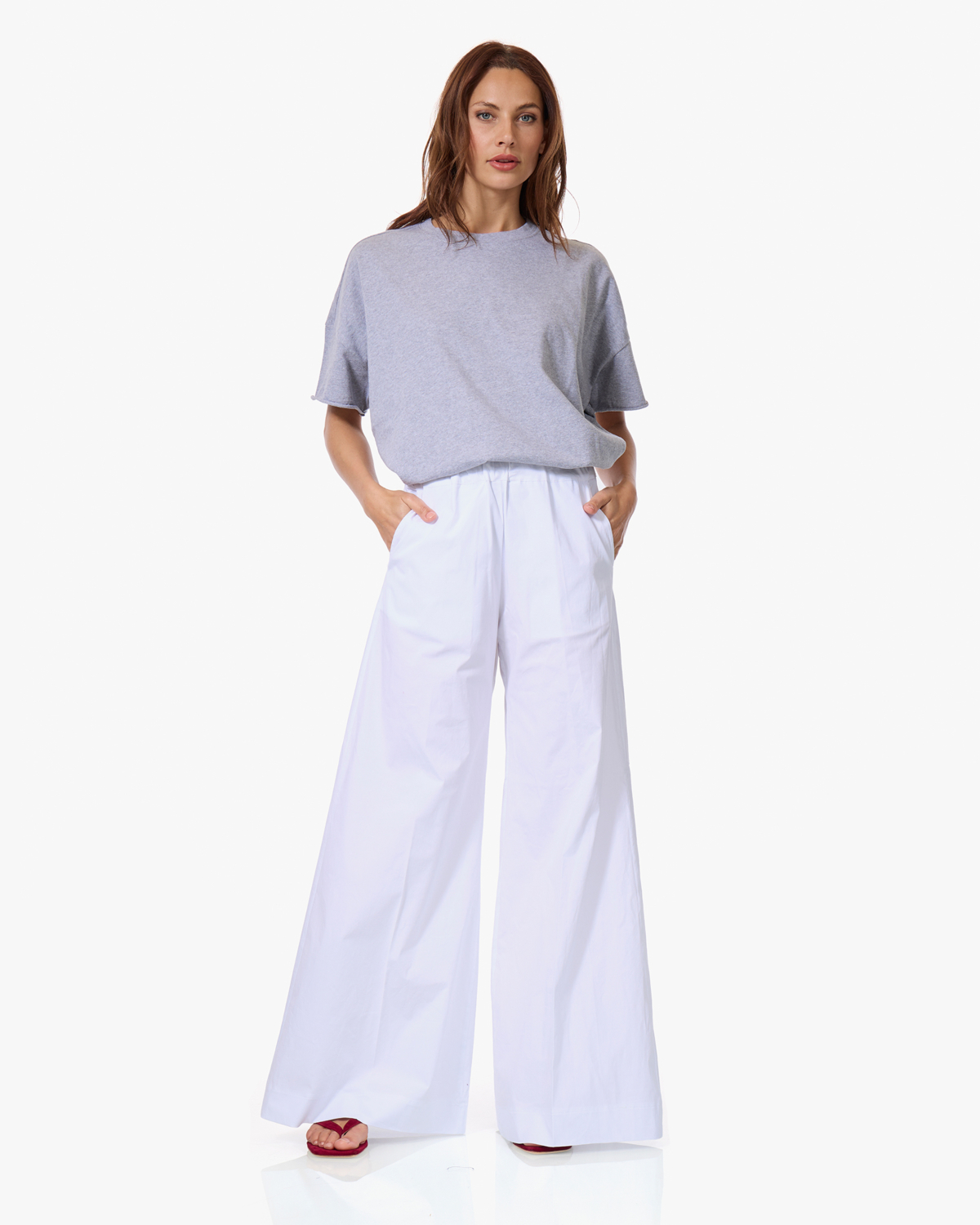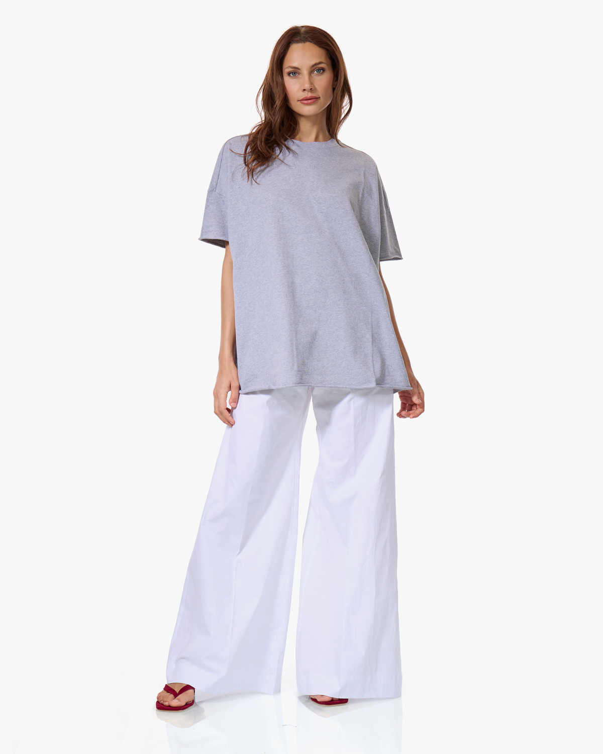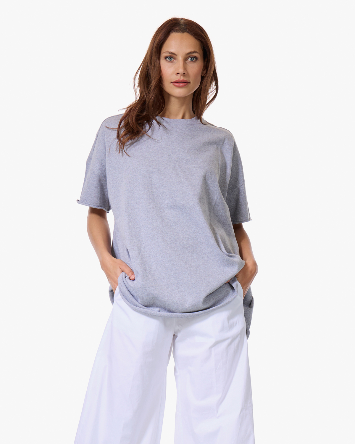 Draag dit grijze t-shirt met een witte wijde broek voor een minimalistisch geheel, of combineer het met een donkere jeans en sneakers. Ook leuk met een maxi rok en sandalen voor een casual zomerlook.