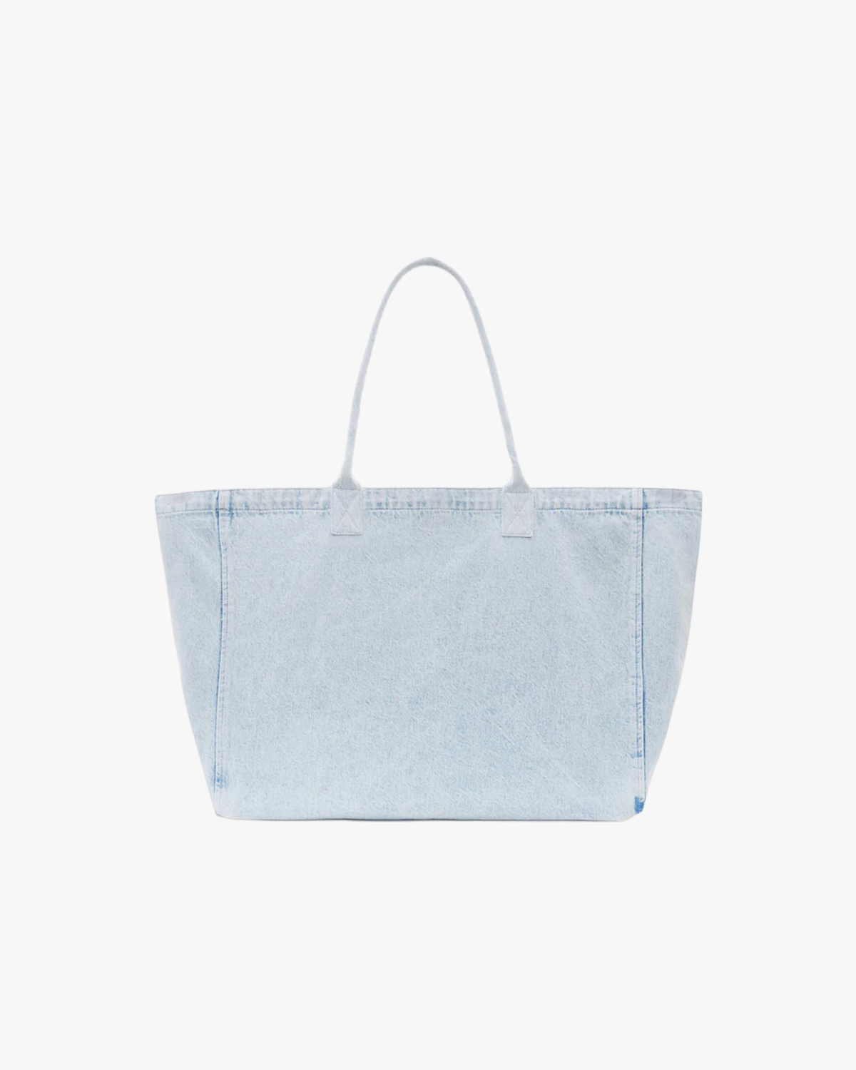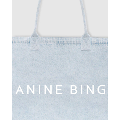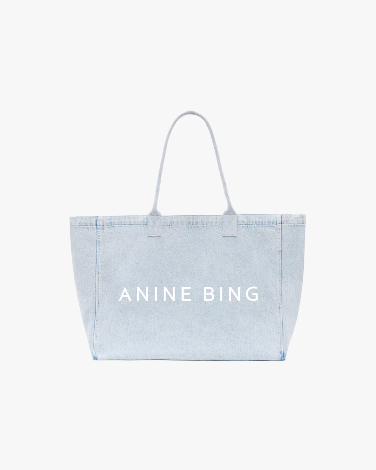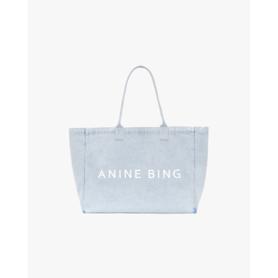 Deze ruime denim shopper van Anine Bing combineert praktische functionaliteit met tijdloze stijl. Uitgevoerd in een zachte lichtblauwe denim met witte merkprint op de voorzijde. De tas heeft een rechthoekige vorm met stevige hengsels en een ruime opening. Het minimalistische ontwerp en de zachte denim structuur maken deze shopper een perfecte dagelijkse begeleider.