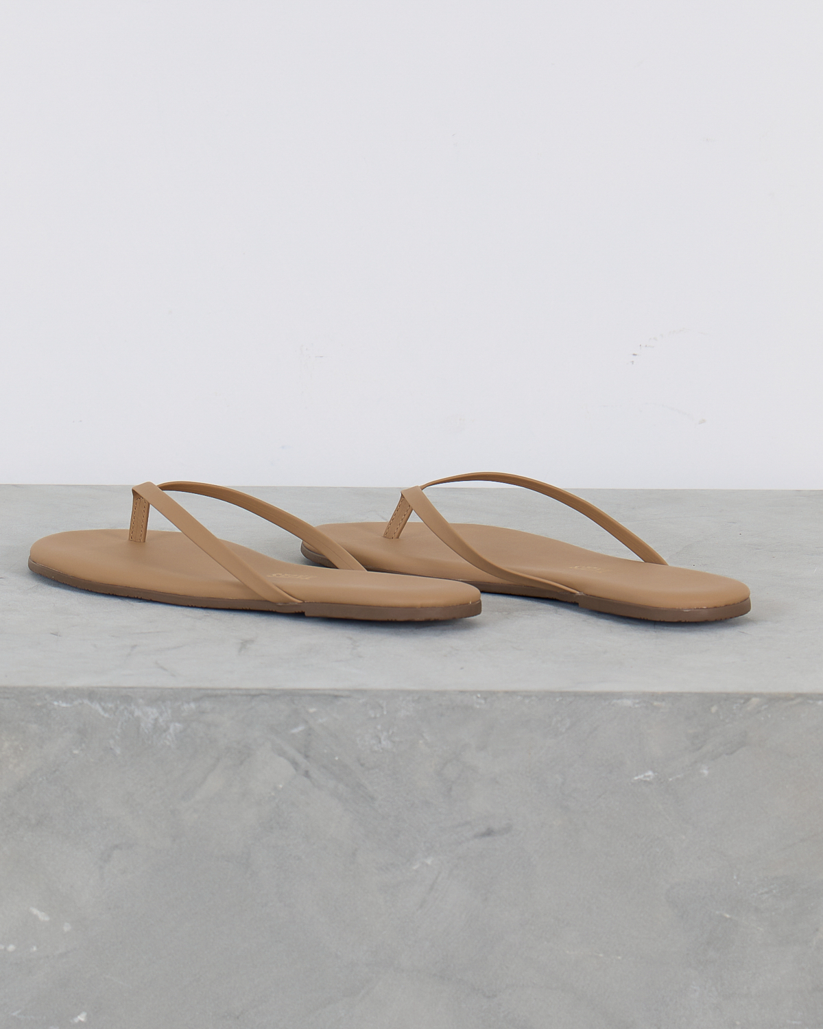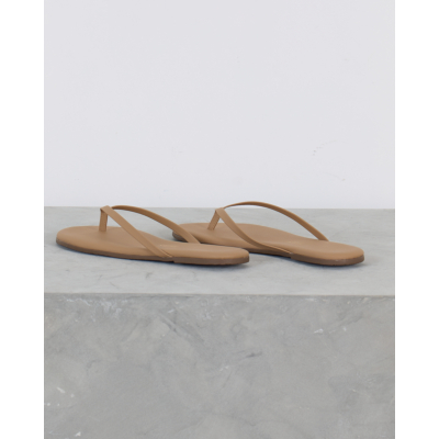 Deze bruine teenslippers van Tkees zijn gemaakt van hoogwaardig leer met een matte afwerking. Het minimalistische ontwerp kenmerkt zich door dunne bandjes tussen de tenen en een platte zool. De warme bruine kleur heeft een natuurlijke, neutrale uitstraling die bij veel looks past. Het leren materiaal voelt zacht aan en wordt comfortabeler naarmate je ze meer draagt.