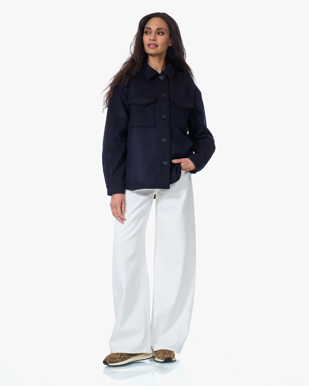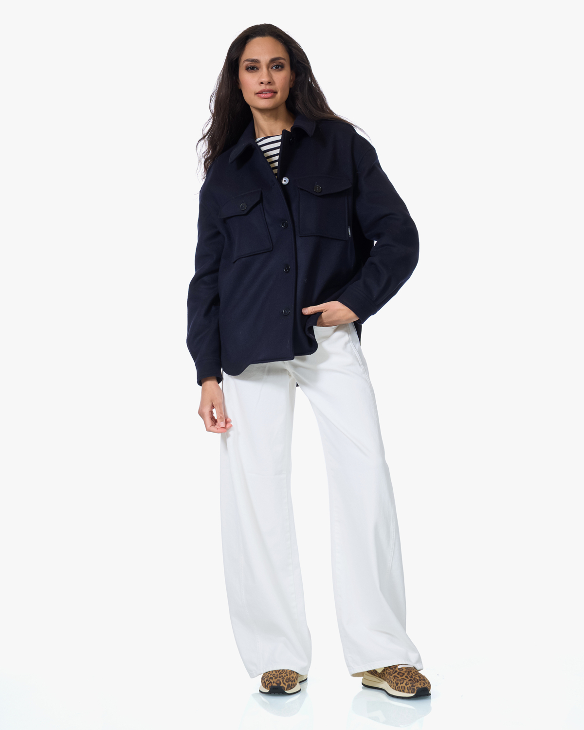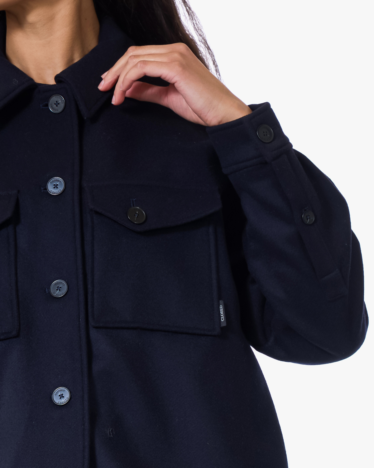 Dit overshirt van Closed combineert comfort met stijl. Gemaakt van 77% scheerwol en 23% polyamide voor heerlijk draagcomfort. Het design heeft een klassieke kraag, knoopsluiting en opgestikte borstzakken met klep. De regular fit zorgt voor een comfortabele pasvorm met voldoende bewegingsruimte. De diepe marineblauwe kleur maakt dit een tijdloze toevoeging.
